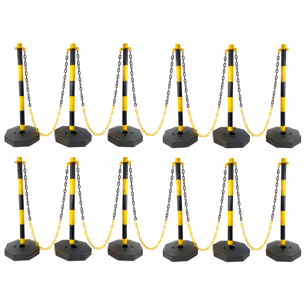 - HIGH-VISIBILITY WARNING COLORS: Designed with White and red stripes to maximize visibility, these stanchions serve as an effective warning signal. Easily connect them using the included S-hooks and chains to create a clear safety barrier.