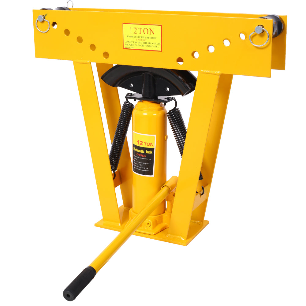 • 12 Ton Pipe Bender Manual Hydraulic, Piping Bending Exhaust Tube Fabric with 6 Dies, Adjustable Rollers 90-180 Degree Bending Steel Iron Metal Ratcheting for Pipe Tube Bender,yellow