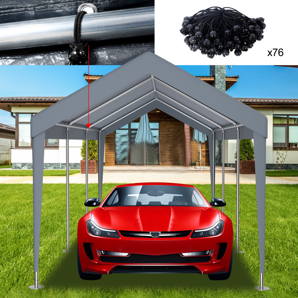- SECURE FIT – Equipped with 76 premium elastic buckles, the canopy cover ensures a snug and secure fit for 12x20 ft carports. The elastic ropes effortlessly stretch to keep the cover tightly fastened, even in harsh weather conditions, guaranteeing reliable, long-lasting protection.