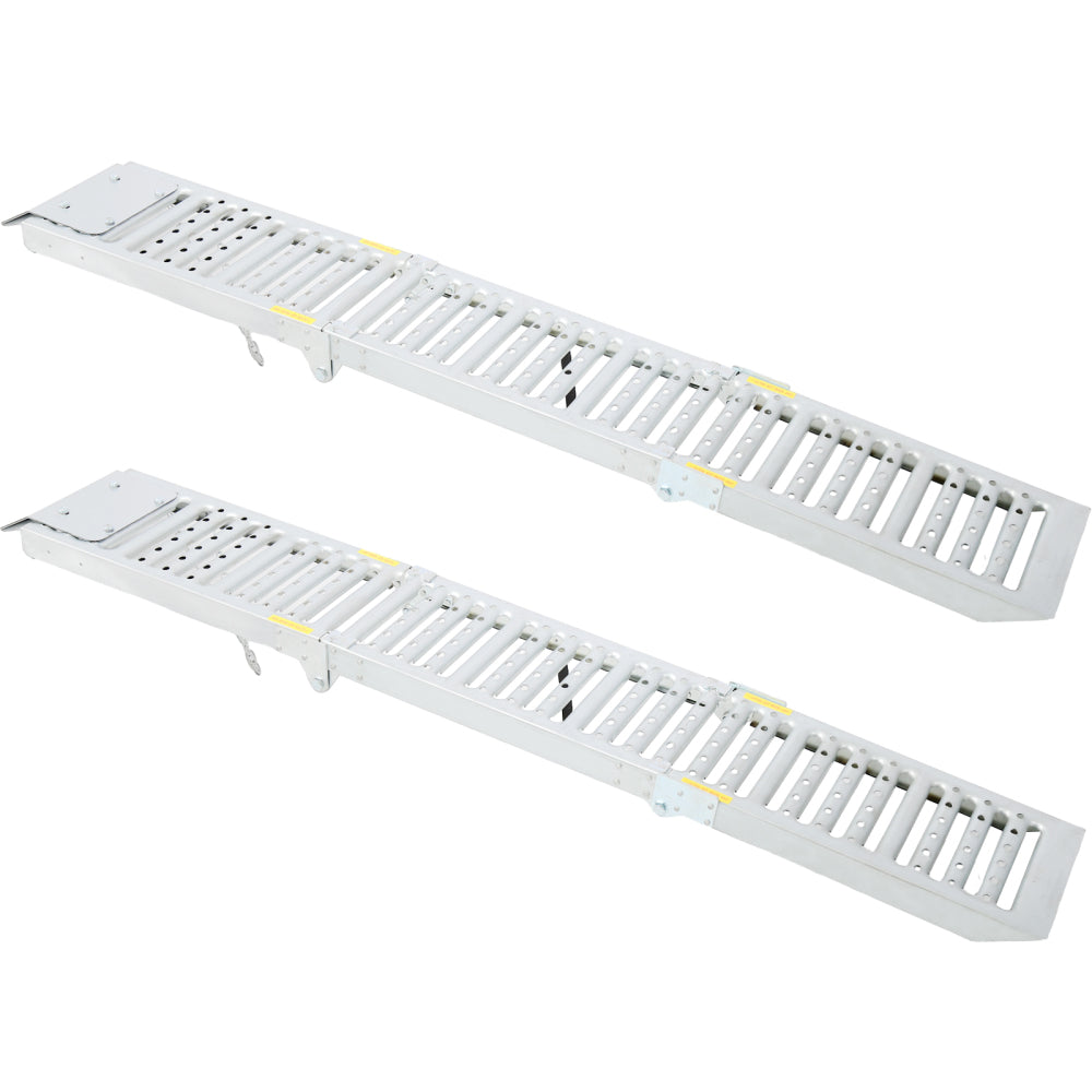 - Convenient Size and Folding Design: The total length of each ramp is 67.3 inches, with a width of 10 inches. However, what sets them apart is their smart folding structure. When folded, the ramps shrink to a compact size of 22.8x10.6x6.1inches This space-saving feature allows for easy storage and shipping, making these ramps a practical choice for both personal and professional use.