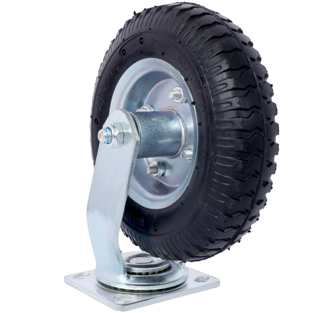 - High Load Capacity: With a 220-lb load capacity and a swivel plate, this pneumatic caster is designed to provide reliable support and maneuverability for a range of manual applications at low speeds, ensuring efficient and effective use.