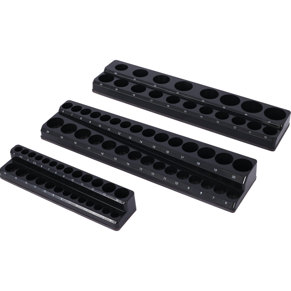 - Quick and Easy Sorting: Say goodbye to socket confusion with our magnetic socket holders. Numbered for simplicity, this 3-piece SAE set features 68 slots in 1/4 inch, 3/8 inch, and 1/2 inch sizes to accommodate both deep and shallow sockets. Easily identify and access the right socket for the job with our tool organizer.