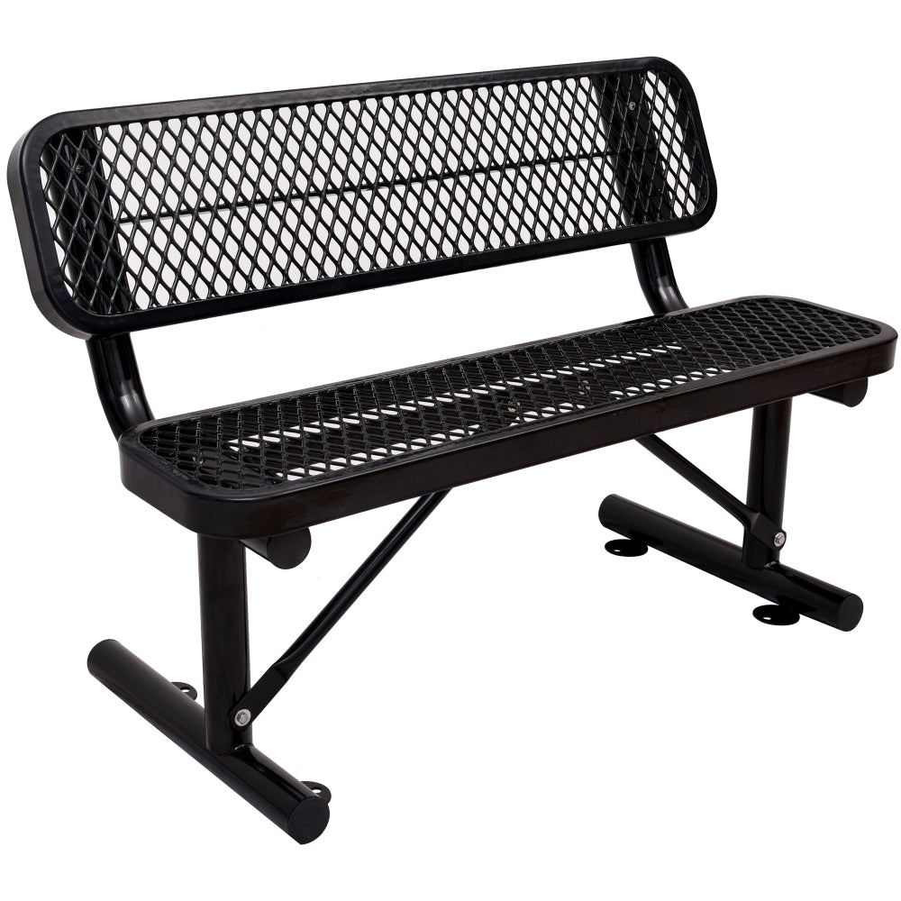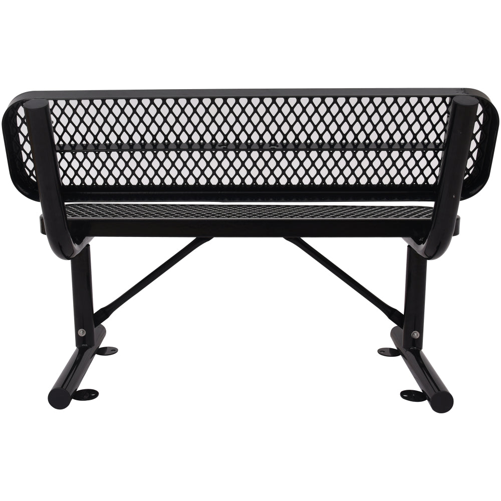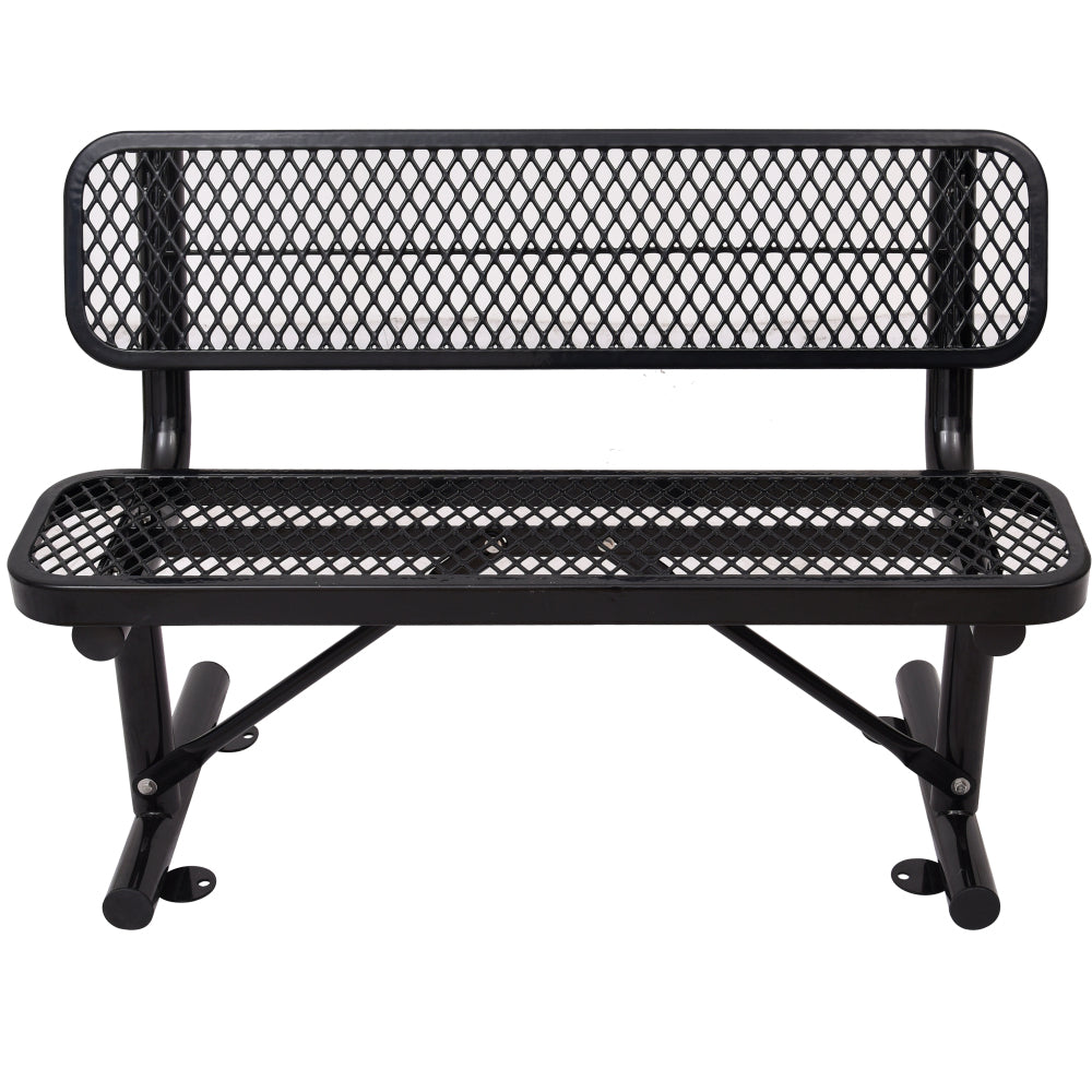 - The metal mesh bench has a hollowed out backrest and bench top, perfect for lawn, park, deck, garden, patio, porch and more. Powder coated steel metail, for use in hot sun, snow, rain, salt spray and strong winds.