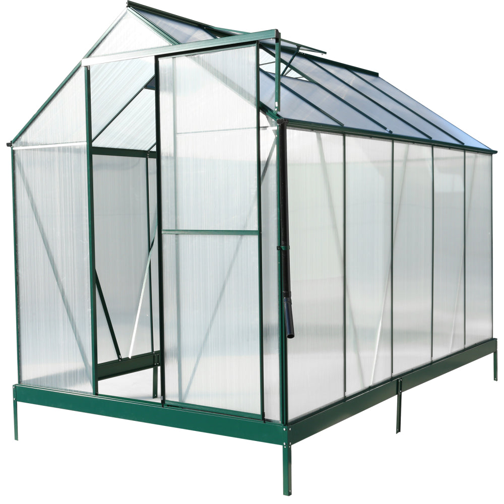 6.3'*10.2'*7' Polycarbonate Greenhouse, Heavy Duty Outdoor Aluminum Walk-in Green House Kit with Rain Gutter, Vent and Door for Backyard Garden, color green