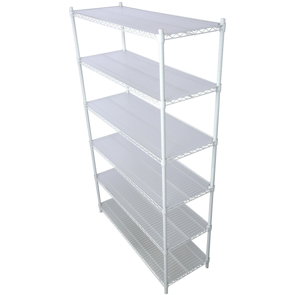 Material: metal Size: 507*1212*2123MM / 20*48*84inch Wire diameter: 3.0/4.5/6.0mm Pipe diameter: 25.4*1.2mm With 6pcs PP shelf liner(0.4mm thickness) With reinforcing reinforced wire Capacity: 1000lbs(450kg) each tier