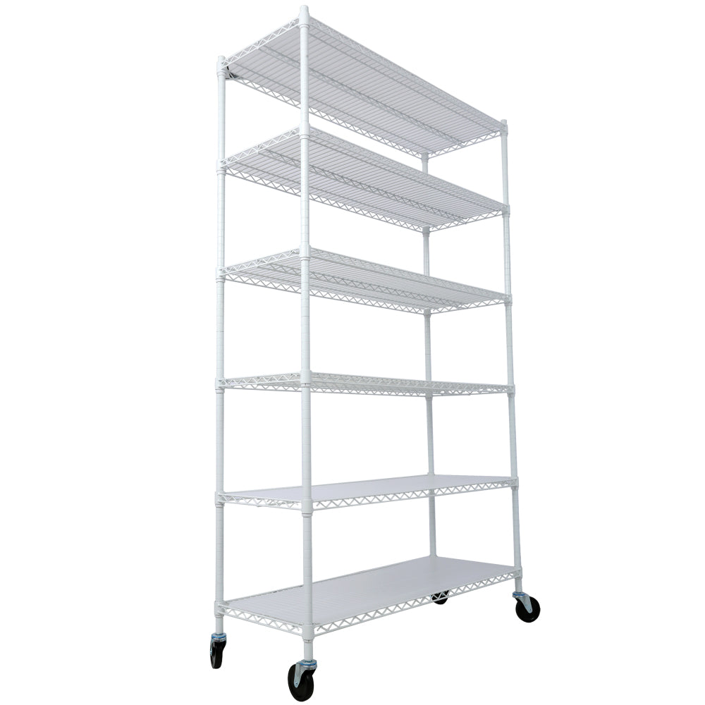 • 6 Tier 6000lbs Capacity NSF Metal Shelf Wire Shelving Unit, Heavy Duty Adjustable Storage Rack with Wheels & Shelf Liners for Commercial Grade Utility Steel Storage Rack, White- 82"H x 48"L x 18"D