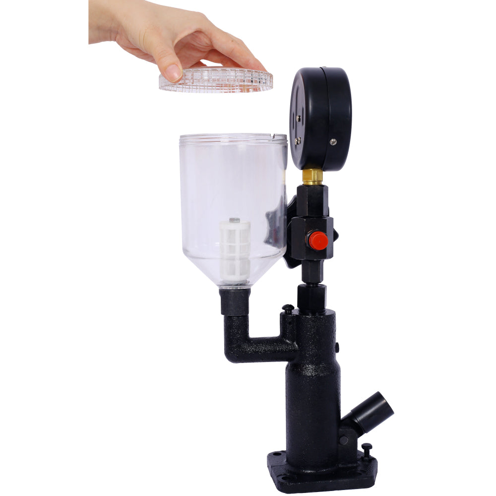 - High-Quality Cast Iron Construction: This diesel injector tester is crafted from premium cast iron, significantly enhancing its durability and rigidity. It includes a plastic fuel cup for fuel containment and a steel pressure gauge for precise air pressure detection.