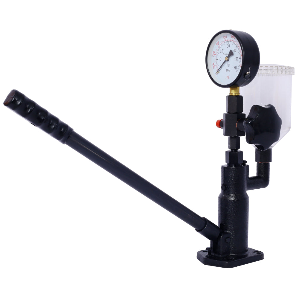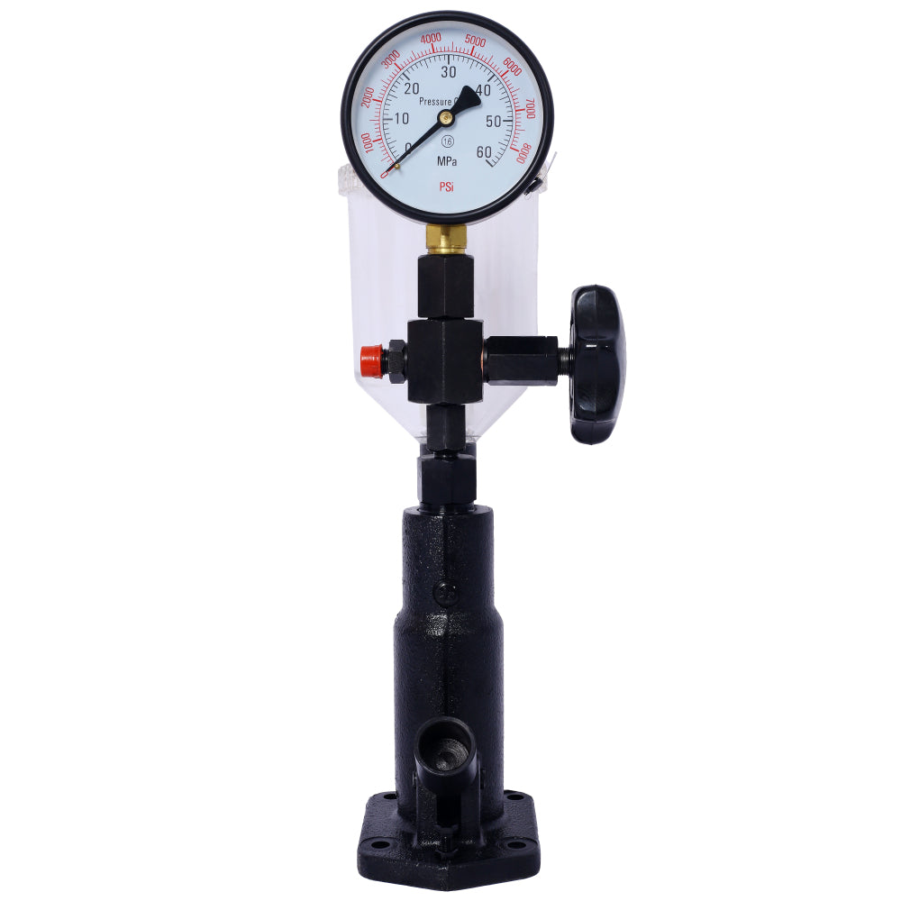 - Complete Accessory Kit: The injector pop tester kit comes with a 60MPa pressure gauge, handle, adjustable hand wheel connection nuts in A and B types (12 x 1.5mm and 14 x 1.5mm), a 0.8L fuel cup with a filter and delivery valve. Two additional oil pipes are also included for extended testing.