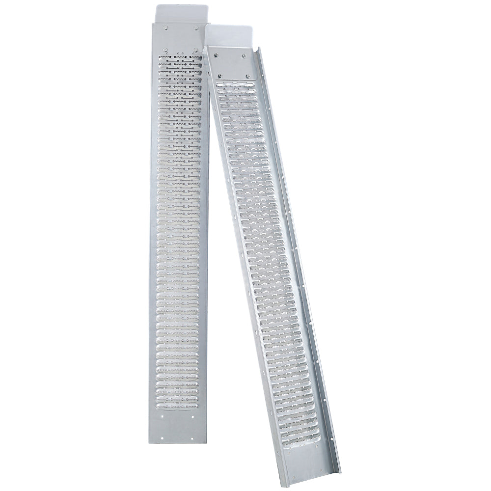 - PRODUCT SPECIFICATIONS – Material: Steel. Dimensions: 69" L x 8-7/8" W x 2" H; The set includes two ramps, four foot plates, and necessary hardware.