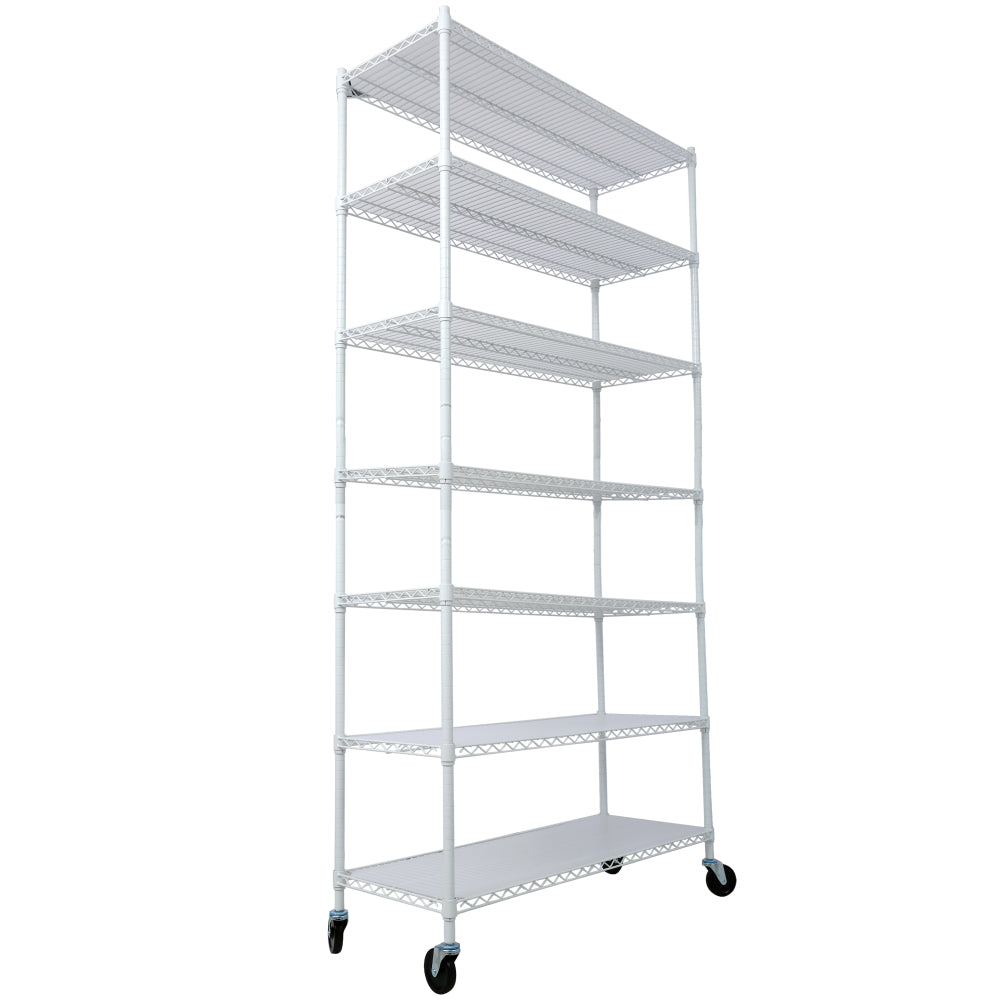 - Exceptional Durability: Constructed from heavy steel, our wire shelving boasts excellent rust and oxidation resistance, ensuring unparalleled quality, longevity, and functionality. The wire shelf liner is of superior quality, thicker than the competition, and the entire 7-tier shelf unit has passed NSF certification, guaranteeing safety and reliability. This storage rack is the perfect addition to any home or office space.