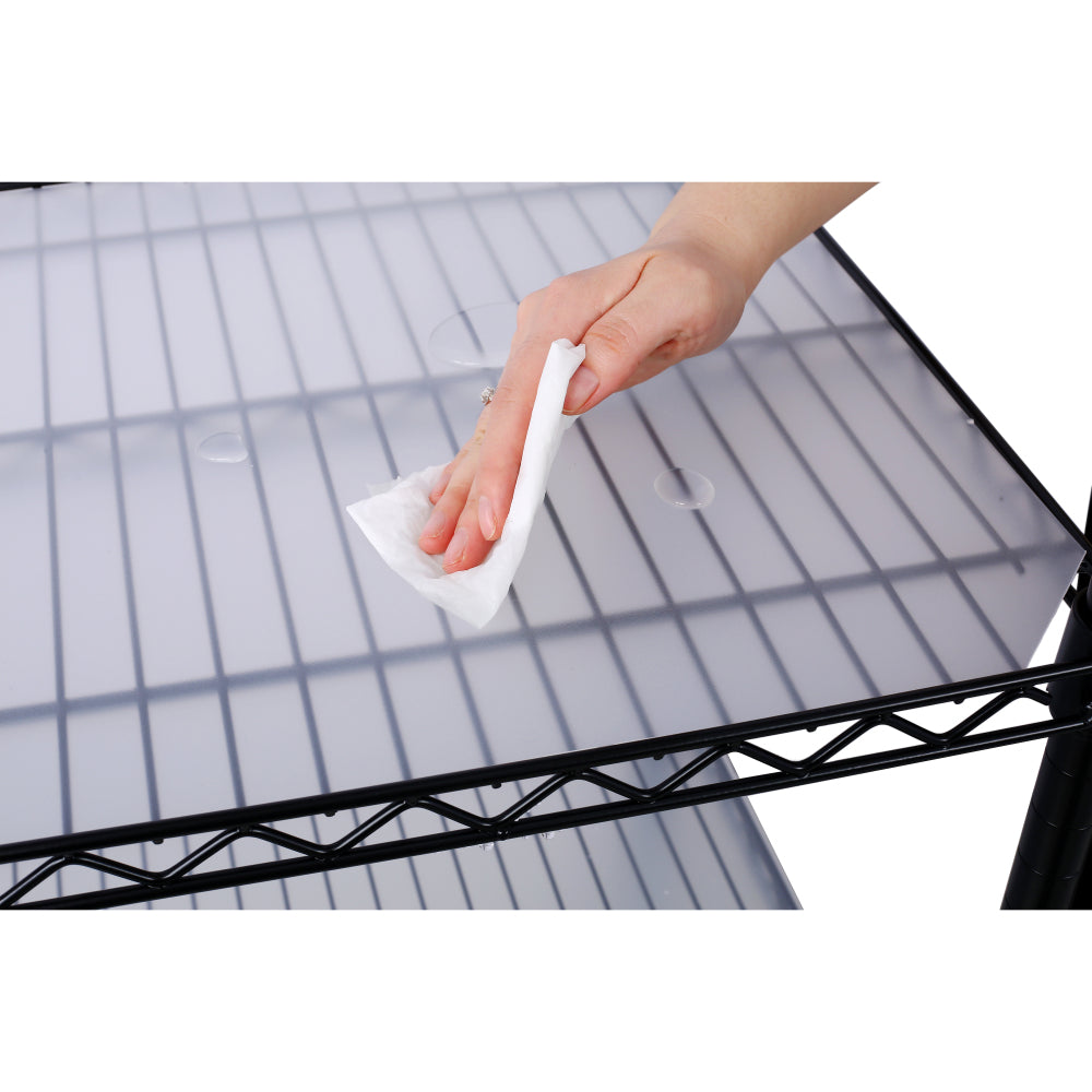 - Spacious 7-Tier Shelving: Our heavy-duty shelving unit features 7 tiers with leveling feet, and each layer shelf can hold 350lbs (evenly distributed), providing a maximum load capacity of 2450 lbs. For optimal stability, we recommend placing heavier items on the bottom shelf. Additionally, the 7 shelf liners come in a variety of beautiful and fun transparent colors, allowing you to infuse a pop of color into your living space. These waterproof shelf liners are resistant to moisture damage, ensur