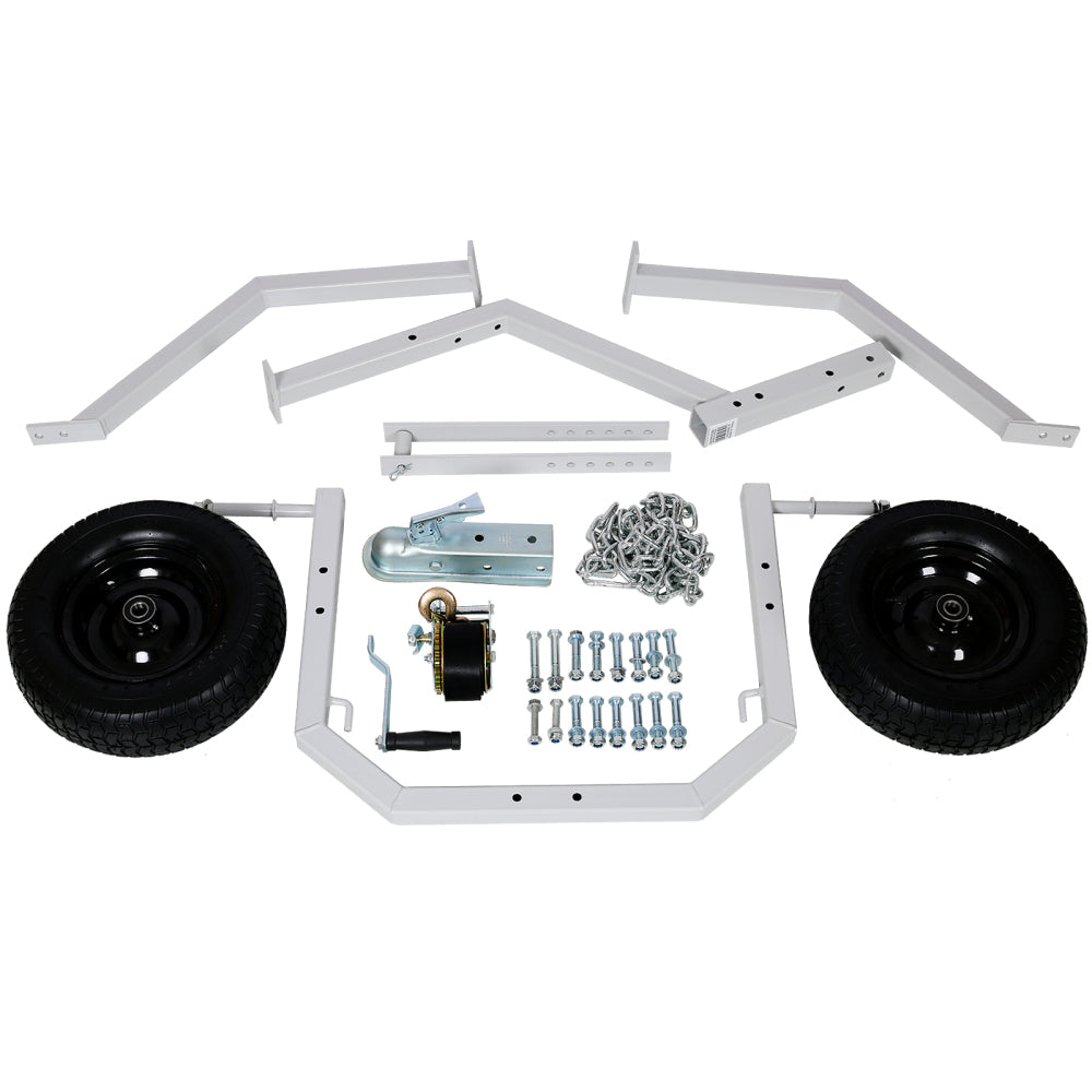 - Quality Performance Parts 4 pneumatic tires are 16.5 in. x 4.8-8 in., delivering a smooth ride on rough terrain. A 2 in. quick-lock trailer coupler makes it fast and easy to hook up to any 2 in. trailer tow ball. Heavy-duty steel construction stands up to the rigors of the most rugged logging trails for years of dependable use.