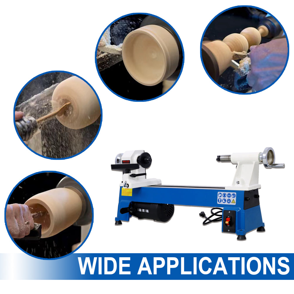 - Experience Versatile Speed Control: Our benchtop wood lathe features 5 variable operating speeds, allowing you to easily change the speed to suit your specific turning needs. Adjust the belt and choose from 500, 750, 1150, 1800, or 3200 revolutions per minute. Turn different workpieces with precision and control.