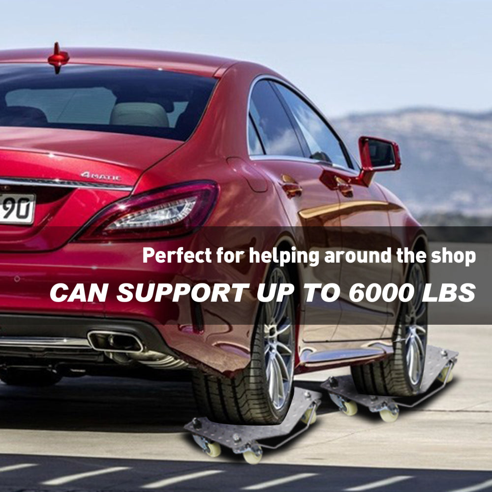 Each car tire dolly supports 1,500 pounds for total 6,000-pound capacity easily.
