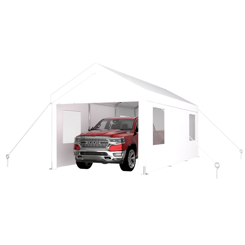 • Premium Canopy Cover: The PE canopy offers excellent water repellency, UV protection, tear resistance, and fade resistance, providing long-lasting protection for your vehicles, boats, outdoor furniture, and more. Removable sidewalls and doors offer all-around coverage and security, making this carport ideal for year-round use.