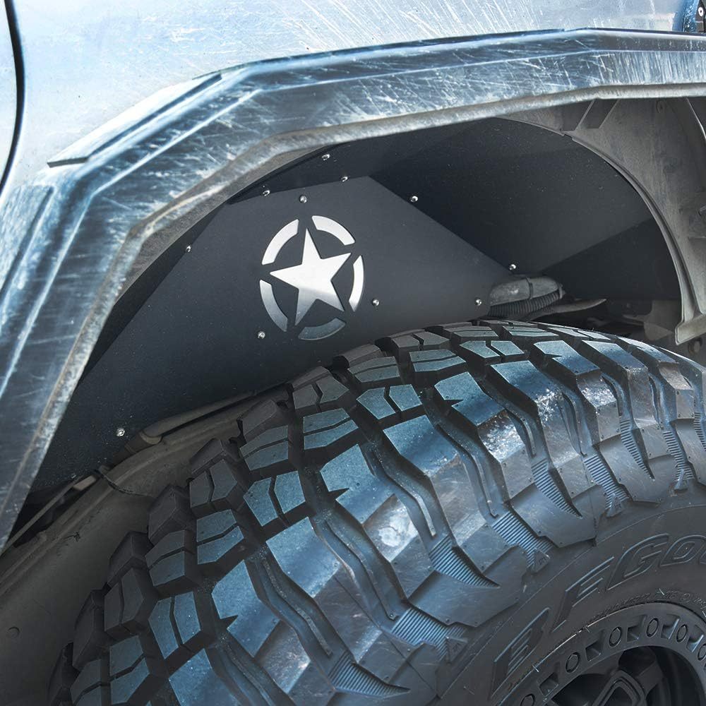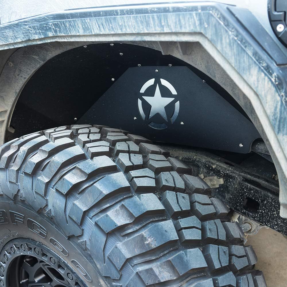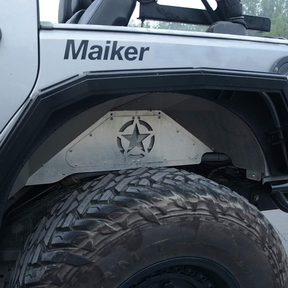 - Improves the look of inner-fender. Available in line grained raw aluminum and have the five star logo laser cut into them.