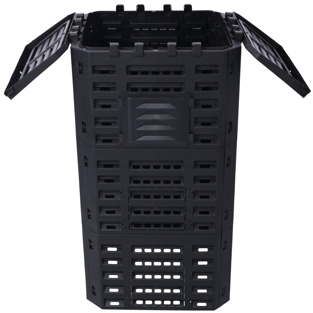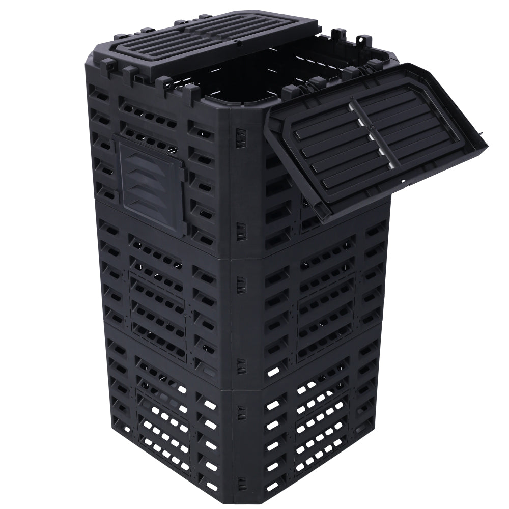 - Premium Recycled Plastic Construction: Our composting bin is made from BPA-free recycled plastic, ensuring that valuable vitamins are not compromised by toxins. The black PP plastic material maintains heat and regulates moisture, resulting in a shorter composting time.