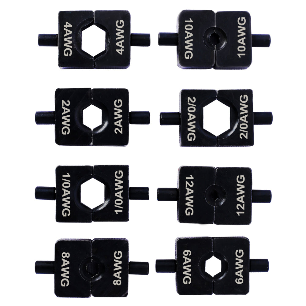 - Multiple Specification -- This hydraulic crimper tool is forged and custom-designed to provide a maximum crimping force of 10T, crimps 12 AWG to 2/0 AWG size copper and aluminum wires. The crimping range is from 4 to 70 mm2(dies for the international unit). Package includes: 1pc hydraulic crimper, 1pc cable cutter, 9pairs crimping dies for copper/aluminum