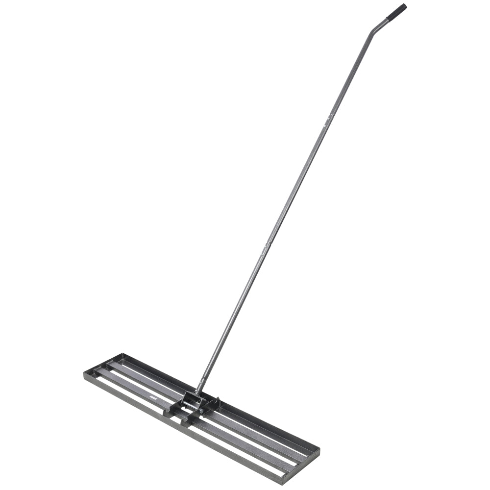 - UPGRADED STRUCTURE & MULTI-FUNCTIONAL DESIGN – This heavy-duty garden leveling rake is built to distribute soil, sand, or fertilizers evenly, remove stones, break up soil clods, and smooth the ground for effortless planting. Enhanced from other models, it features reinforced weak spots on the pole and leveling plate, full-weld technology, and a steel construction with a rubber grip handle for durability and comfort.