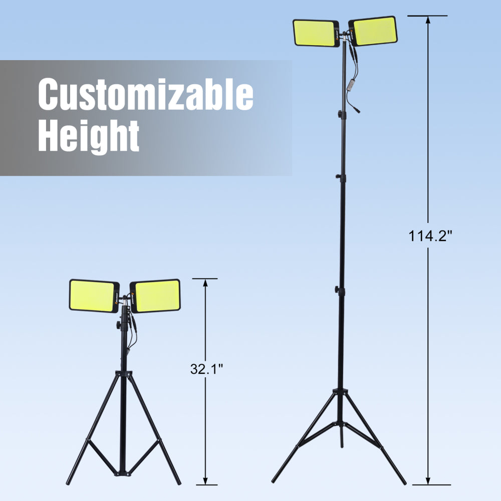 - Made of high-quality aluminum alloy, the tripod lights construction work utility light stand is durable and corrosion-resistant. The light board has been tested for drop resistance, and the ABS black shell will not fall off, making it a reliable and long-lasting work light.