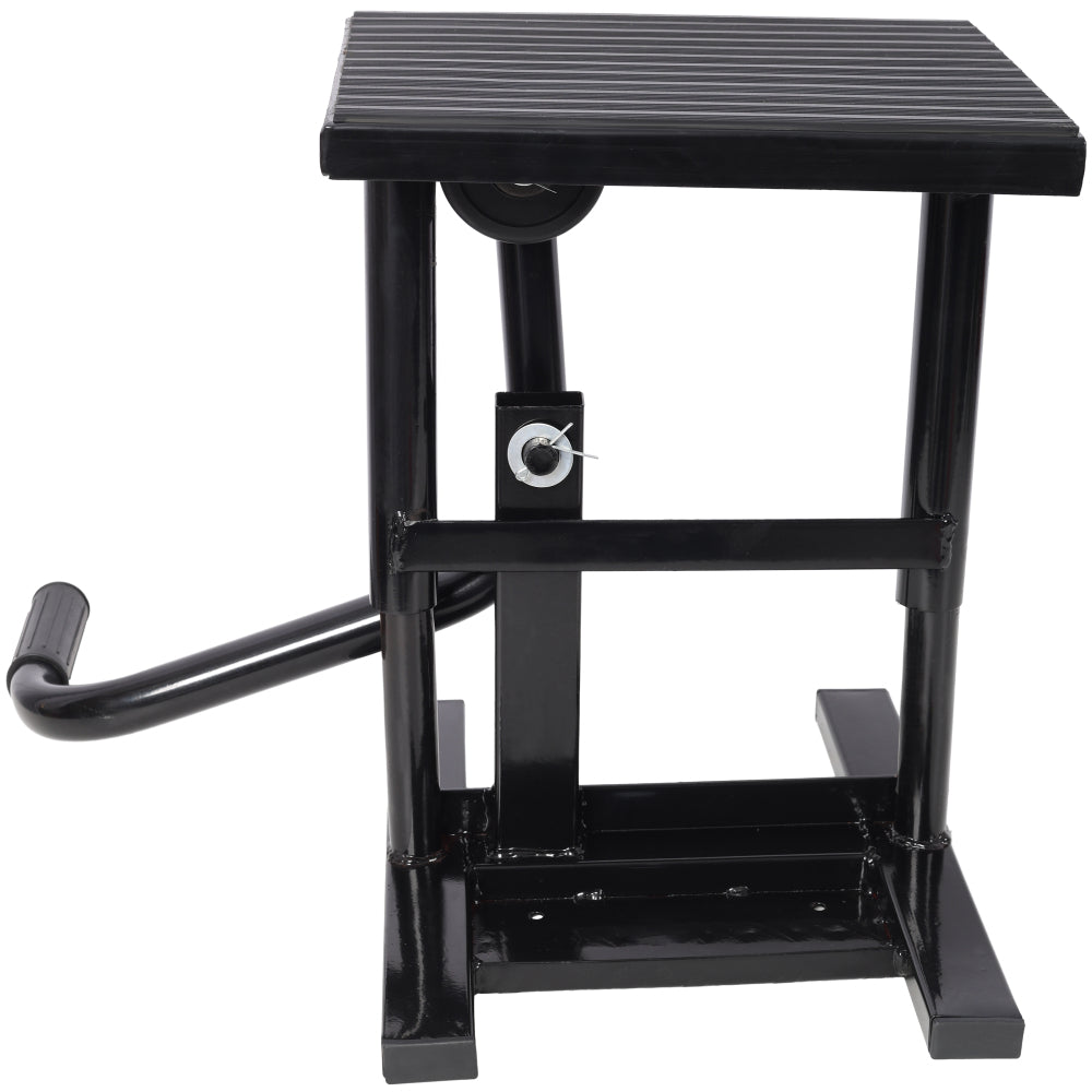 - Superior Stability: With an adjustable height ranging from 11 7/8" to 16" It provides unwavering stability during maintenance, making it suitable for a wide array of motorcycle models. Its compact design not only ensures stability but also allows for easy storage, fitting neatly into your garage or workshop.