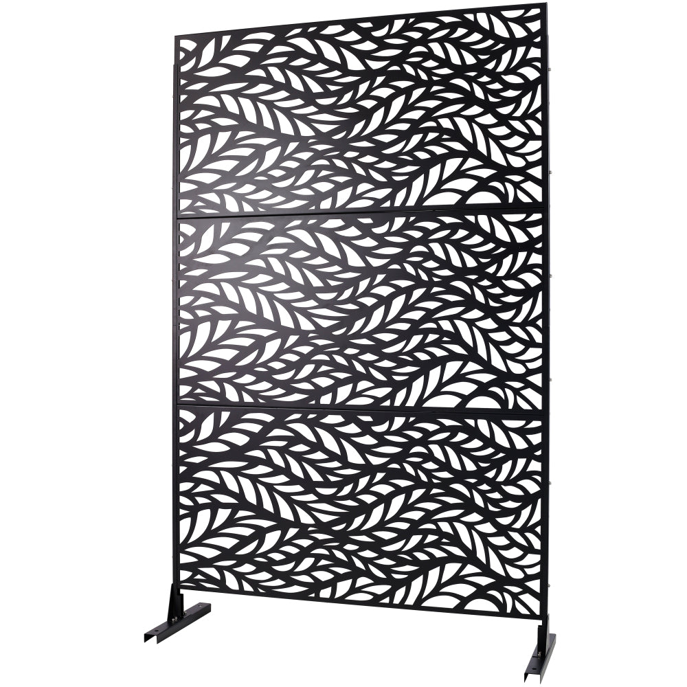 • Outdoor & Indoor Privacy Screen Metal Privacy Screen 76" H×48" W, Freestanding Decorative Privacy Screen for Deck Balcony Patio, Privacy Fence Panels for Outside Lawn Garden PS110 BLACK