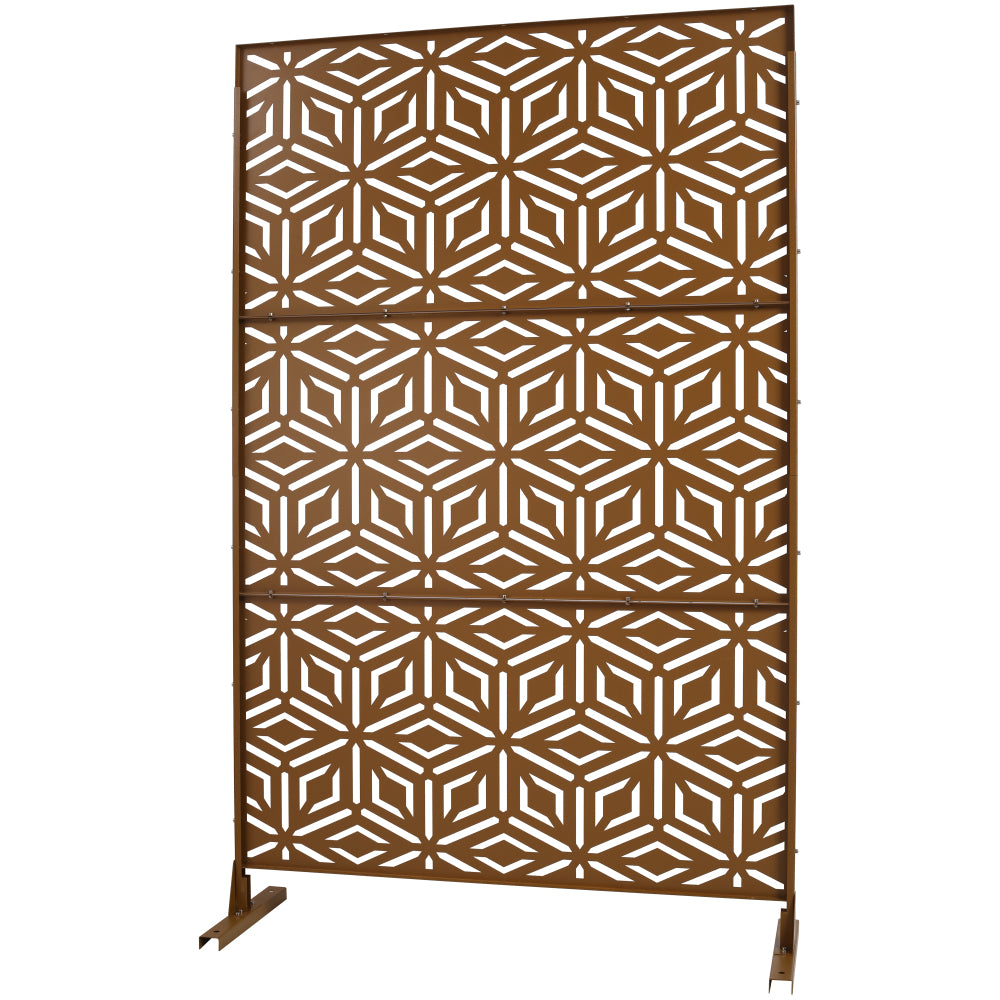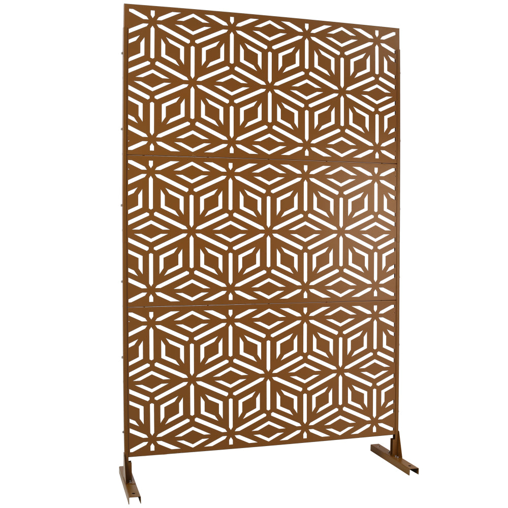 • Outdoor & Indoor Privacy Screen Metal Privacy Screen 76" H×48" W, Freestanding Decorative Privacy Screen for Deck Balcony Patio, Privacy Fence Panels for Outside Lawn Garden PS115 BROWN
