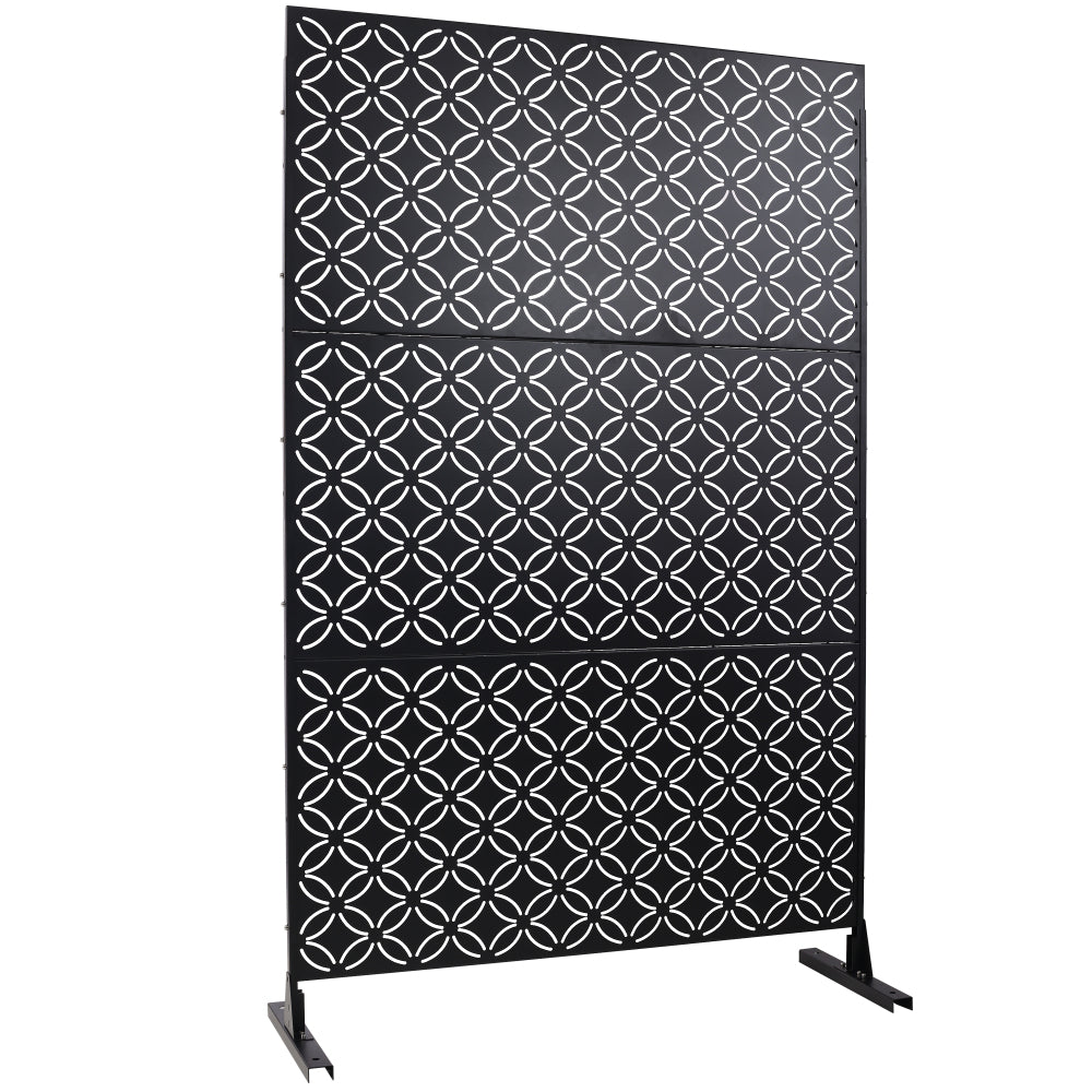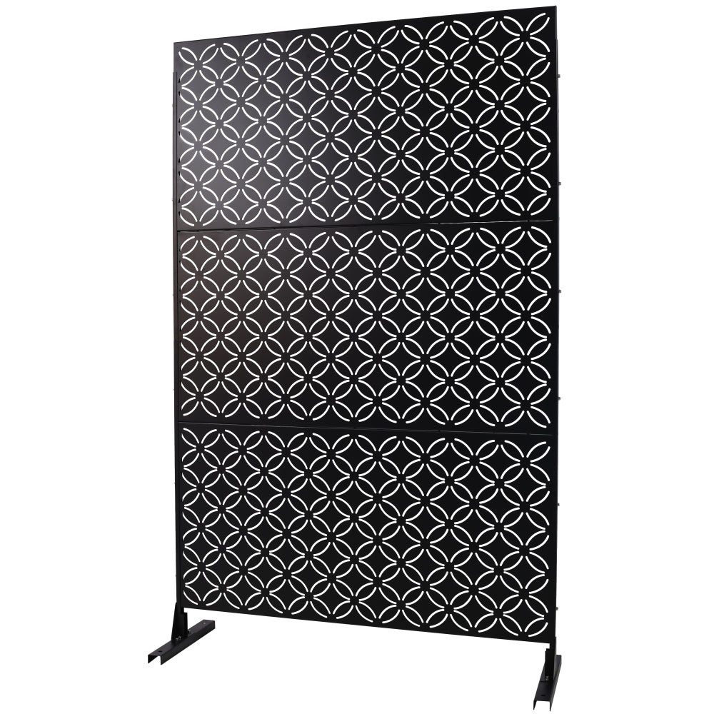 • Outdoor & Indoor Privacy Screen Metal Privacy Screen 76" H×48" W, Freestanding Decorative Privacy Screen for Deck Balcony Patio, Privacy Fence Panels for Outside Lawn Garden PS107 BLACK