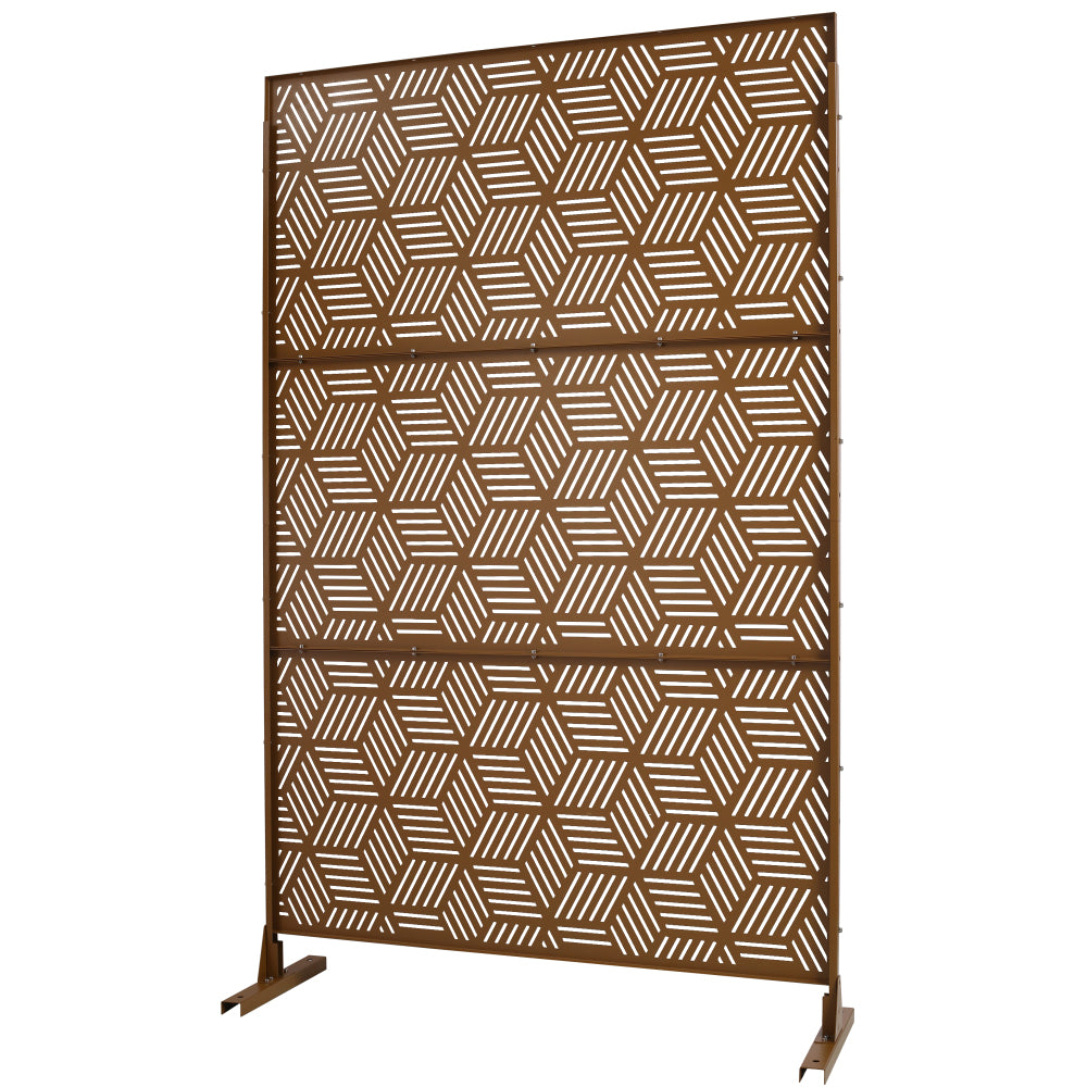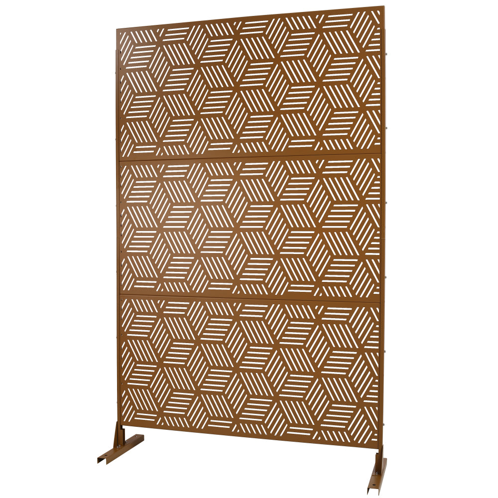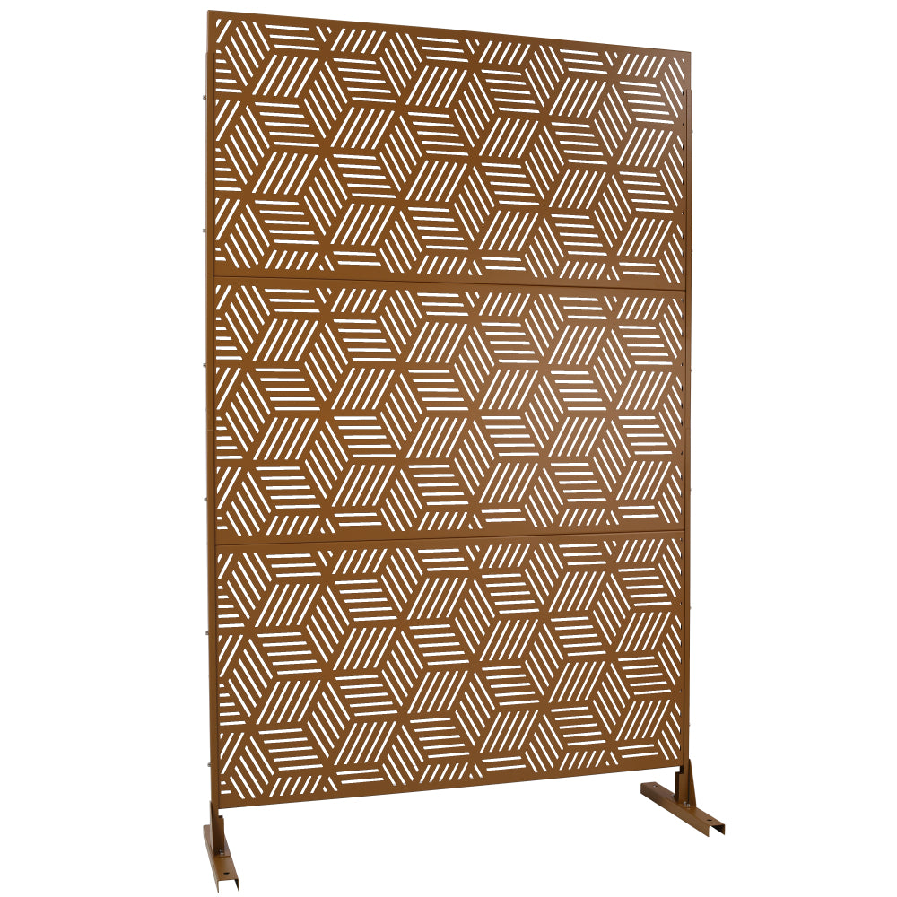 • Outdoor & Indoor Privacy Screen Metal Privacy Screen 76" H×48" W, Freestanding Decorative Privacy Screen for Deck Balcony Patio, Privacy Fence Panels for Outside Lawn Garden PS116 BROWN