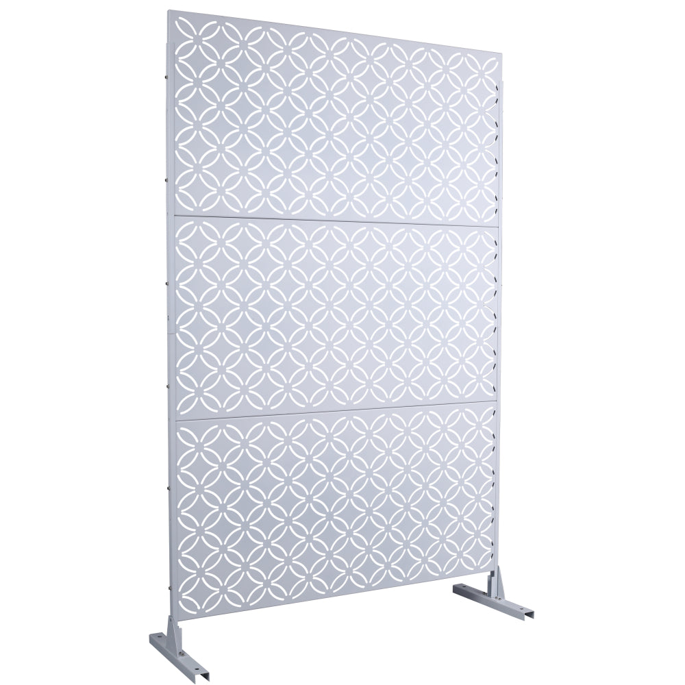 • Outdoor & Indoor Privacy Screen Metal Privacy Screen 76" H×48" W, Freestanding Decorative Privacy Screen for Deck Balcony Patio, Privacy Fence Panels for Outside Lawn Garden PS107 WHITE