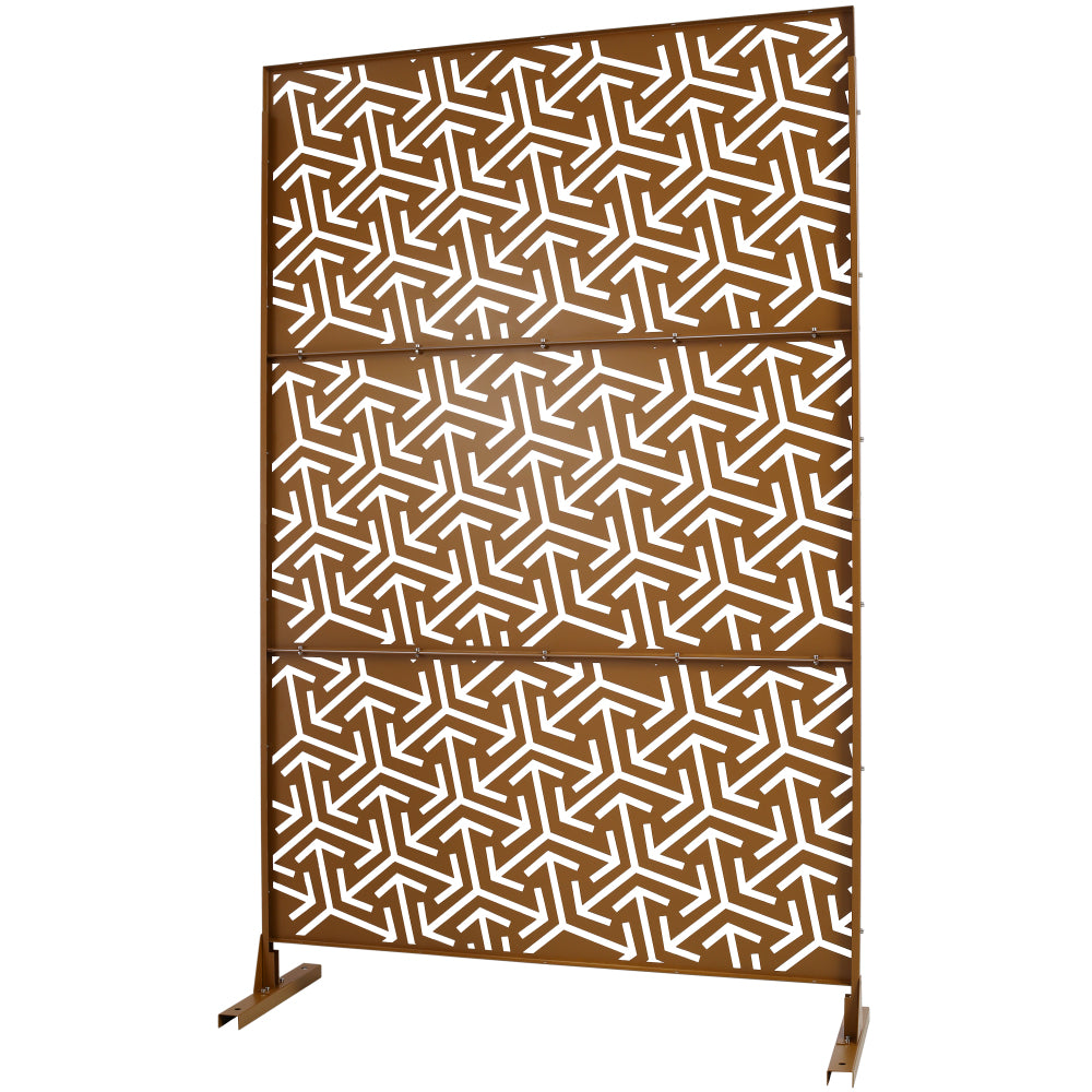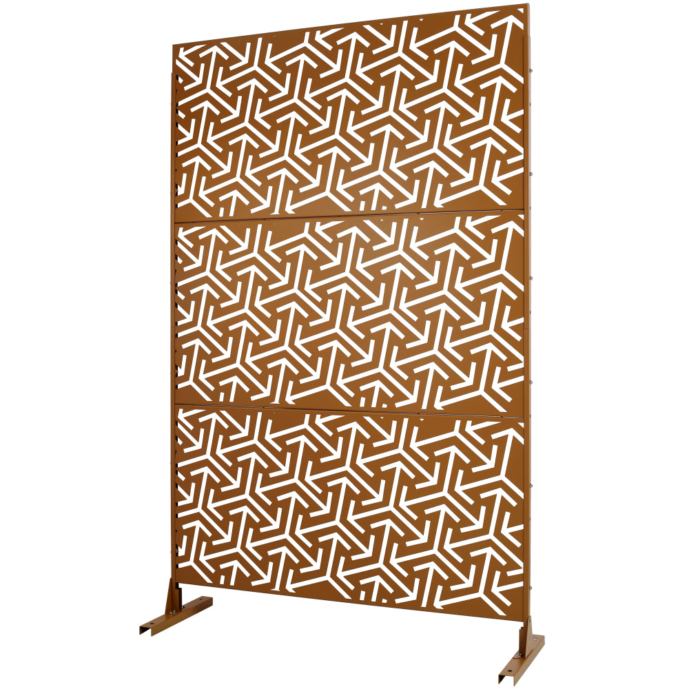 • Outdoor & Indoor Privacy Screen Metal Privacy Screen 76" H×48" W, Freestanding Decorative Privacy Screen for Deck Balcony Patio, Privacy Fence Panels for Outside Lawn Garden PS120 BROWN