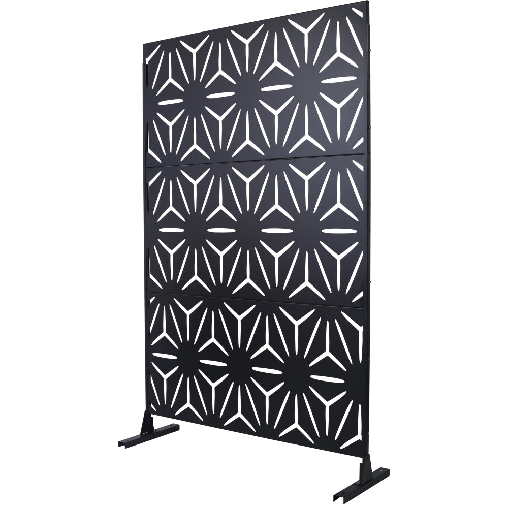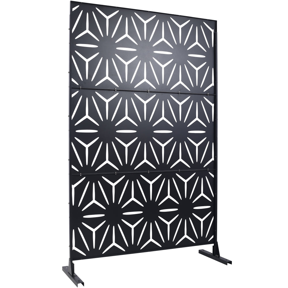 • Outdoor & Indoor Privacy Screen Metal Privacy Screen 76" H×48" W, Freestanding Decorative Privacy Screen for Deck Balcony Patio, Privacy Fence Panels for Outside Lawn Garden PS104 BLACK