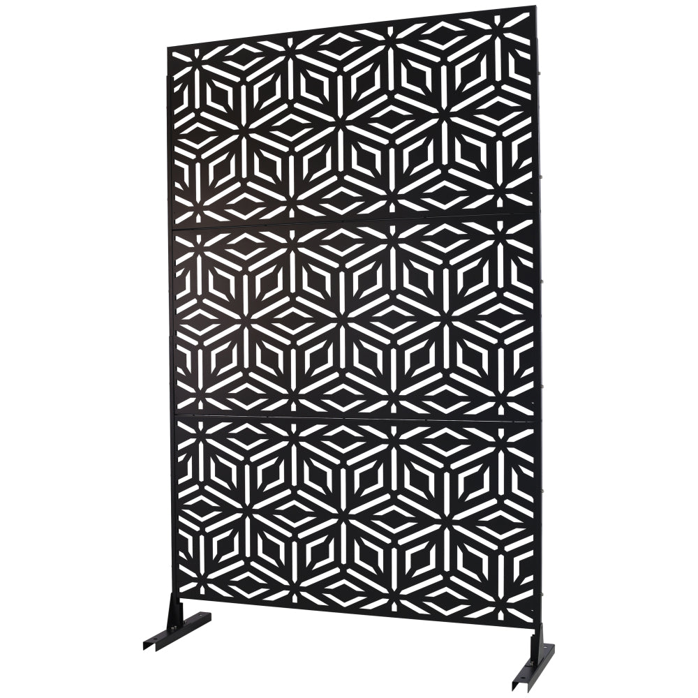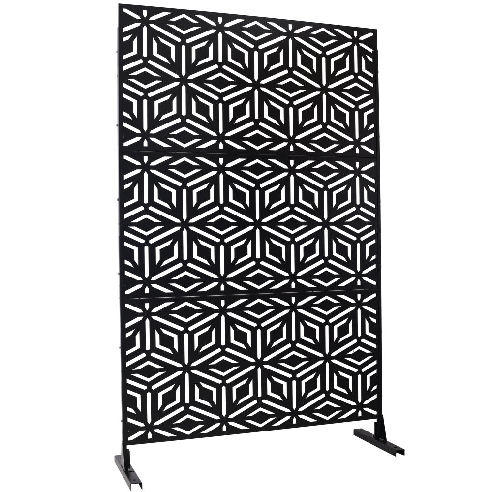 • Outdoor & Indoor Privacy Screen Metal Privacy Screen 76" H×48" W, Freestanding Decorative Privacy Screen for Deck Balcony Patio, Privacy Fence Panels for Outside Lawn Garden PS115 BLACK