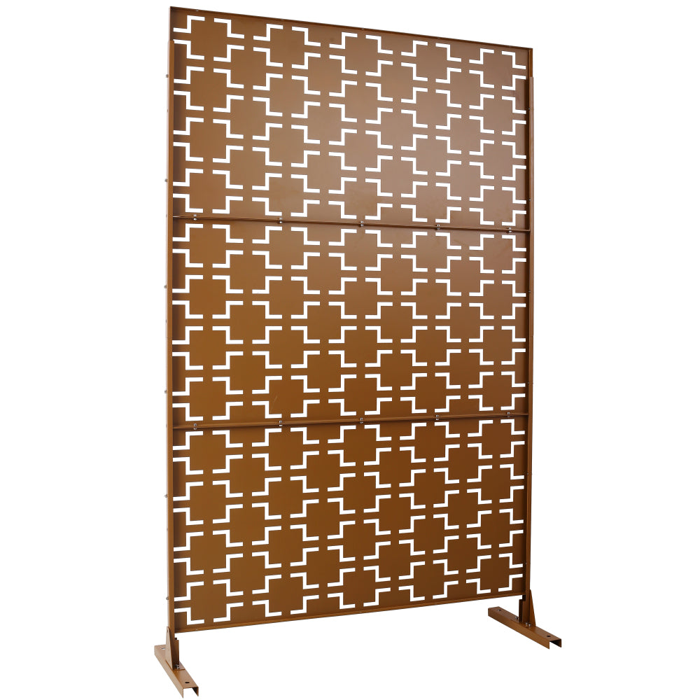 • Outdoor & Indoor Privacy Screen Metal Privacy Screen 76" H×48" W, Freestanding Decorative Privacy Screen for Deck Balcony Patio, Privacy Fence Panels for Outside Lawn Garden PS105 BROWN