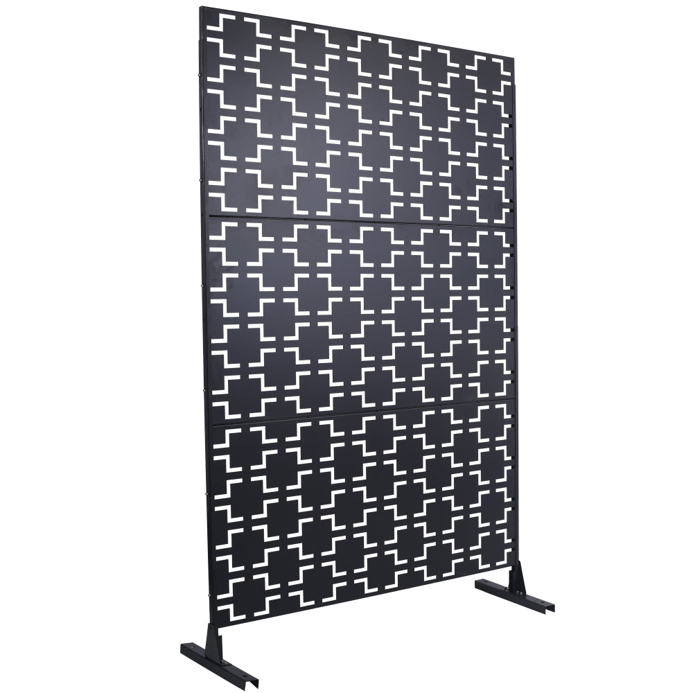 • Outdoor & Indoor Privacy Screen Metal Privacy Screen 76" H×48" W, Freestanding Decorative Privacy Screen for Deck Balcony Patio, Privacy Fence Panels for Outside Lawn Garden PS105 BLACK
