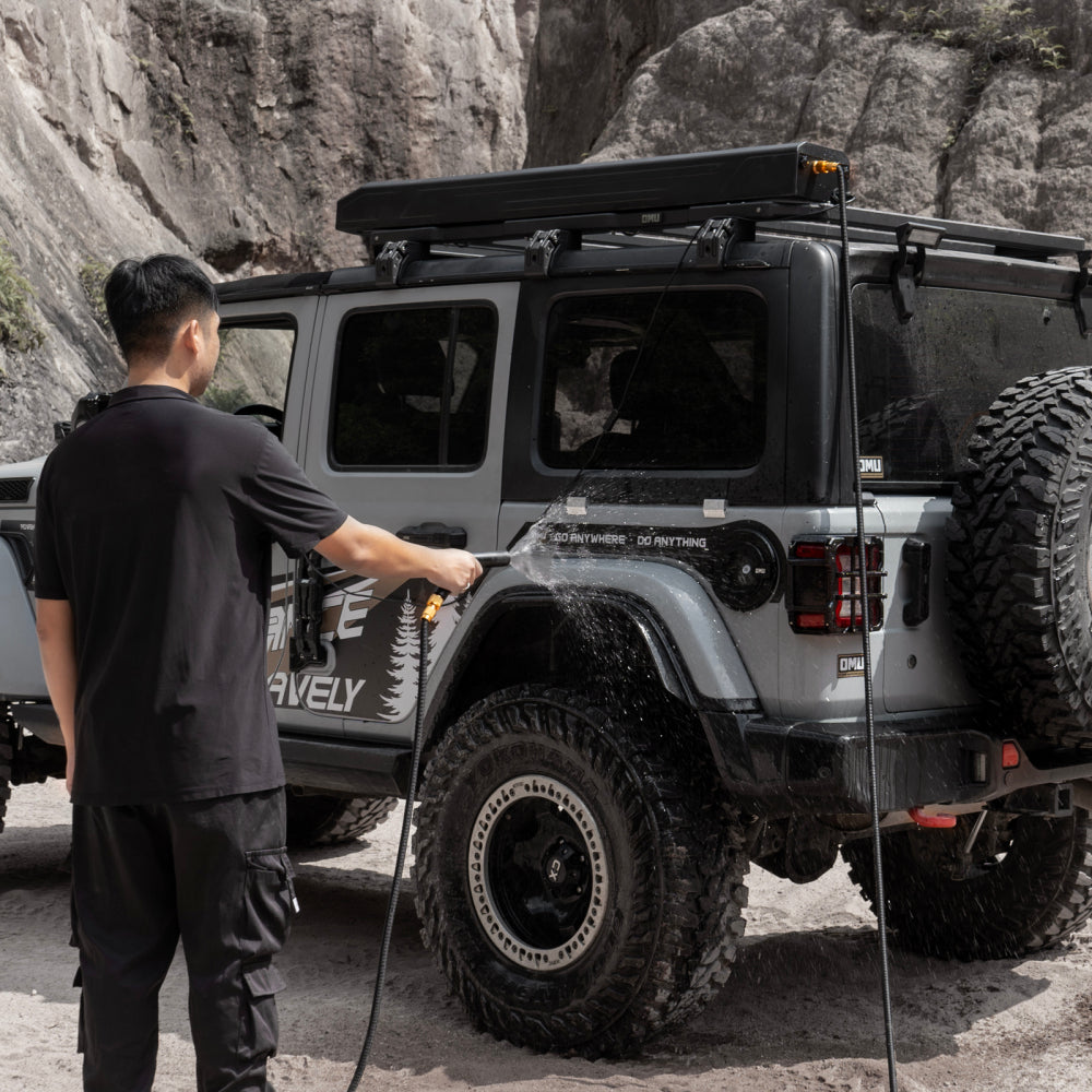 - Universal Compatibility: Pressurized water tanks can be installed in all vehicles, car luggage racks, car crossbars, leveling racks, truck bed rails. The portable water tank can be securely fastened to the vehicle's luggage rack, ensuring a stable and reliable water storage solution when camping and showering