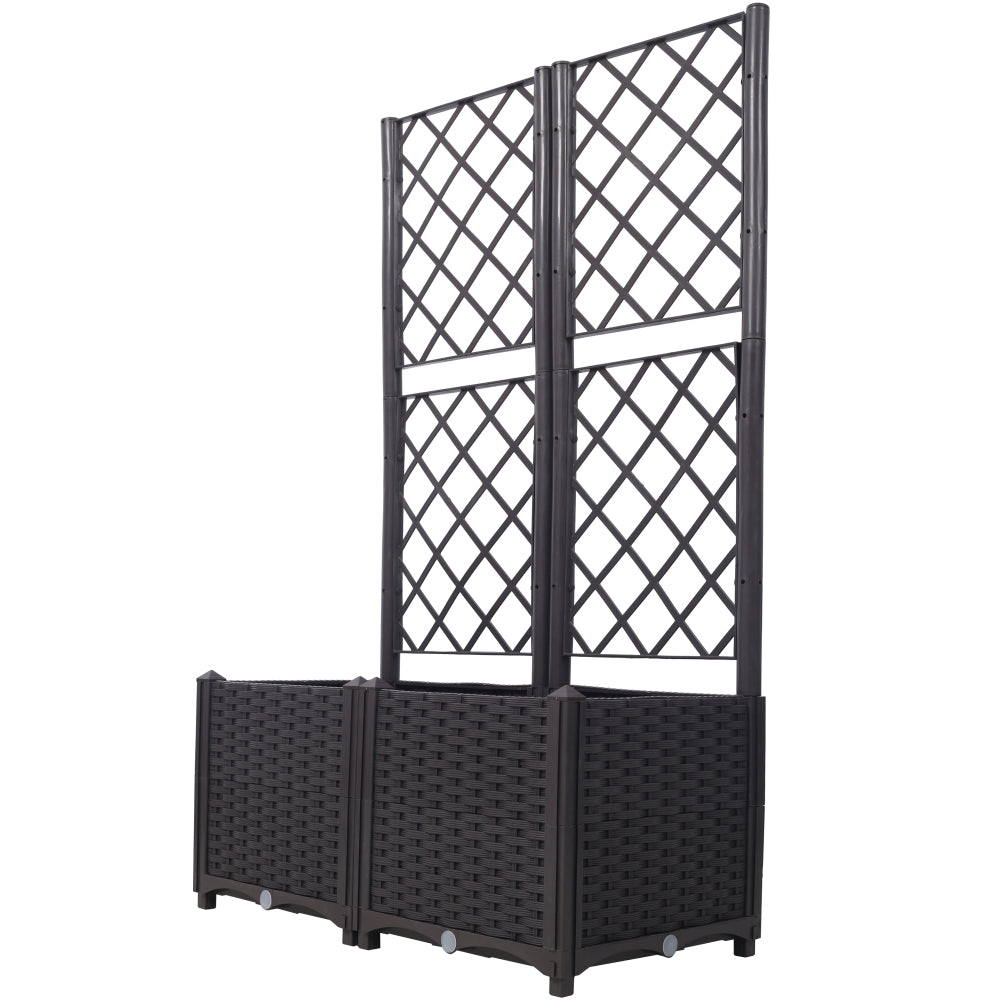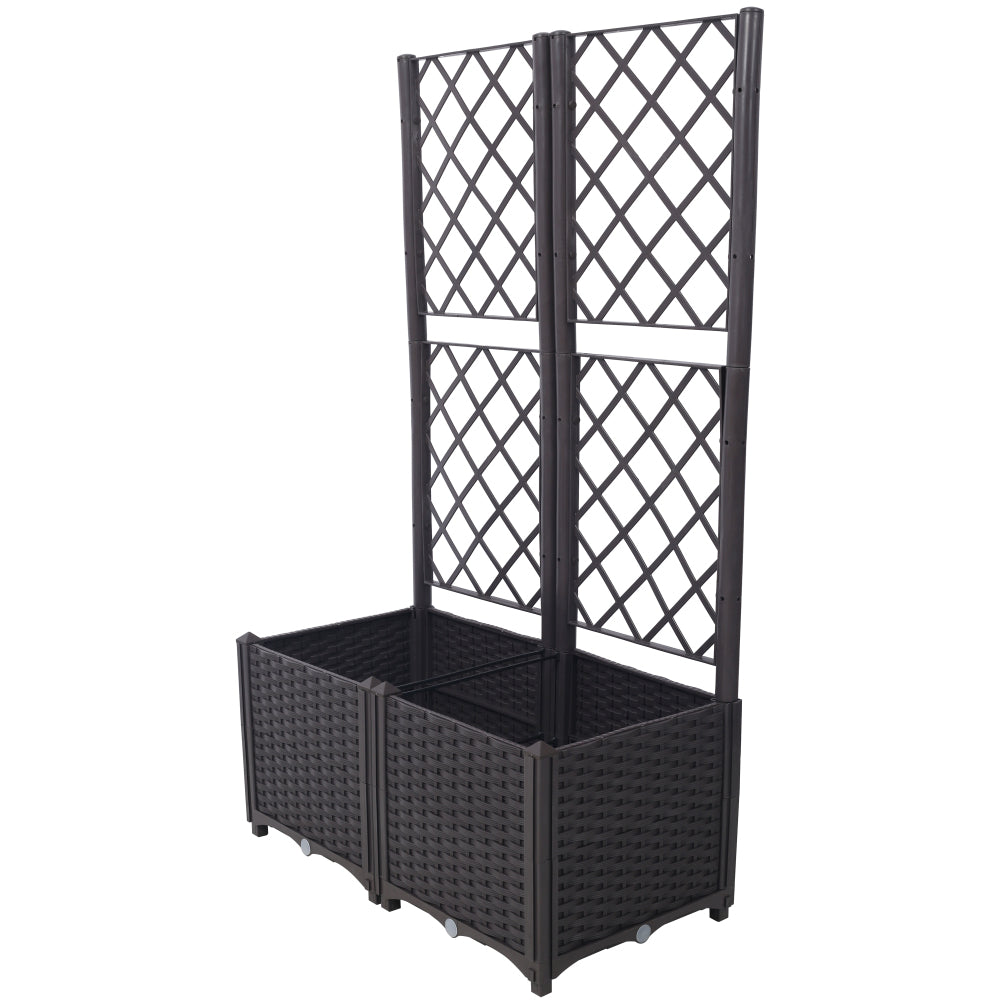 - RATTAN CRAFTED DESIGN – The Trellis Raised Bed features a beautifully crafted design with two removable pots, adding a charming touch to any outdoor area. Made from poly rattan and plastic, it ensures durability and style.