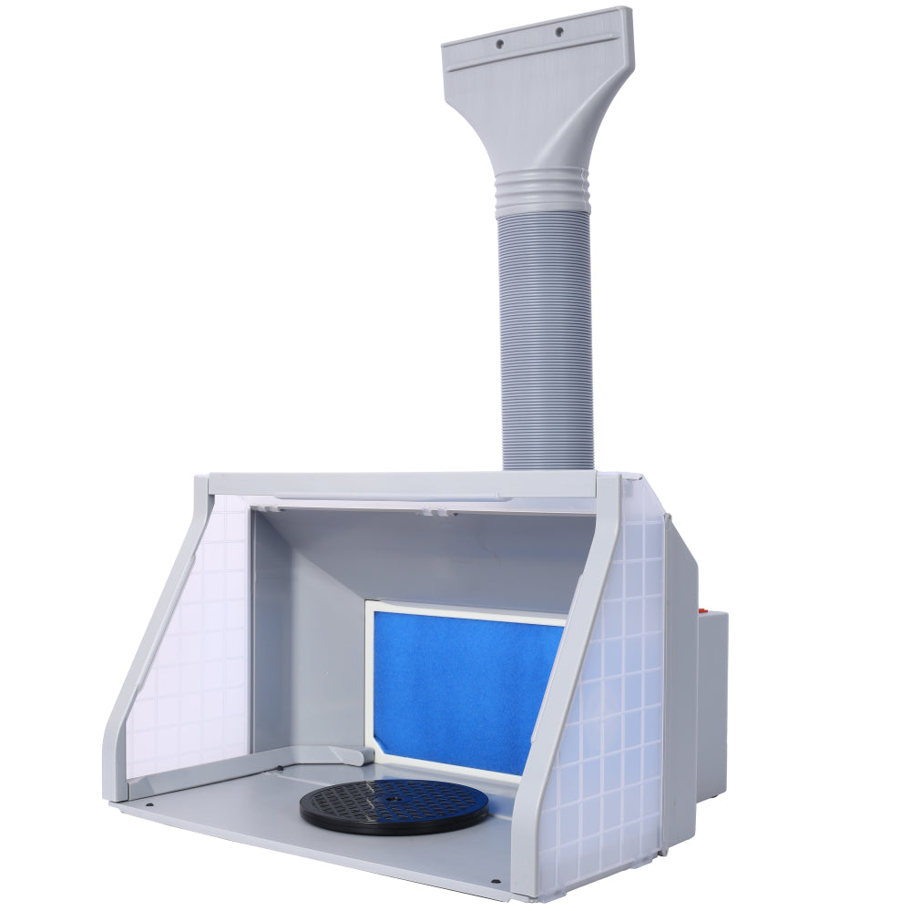 - LARGE SIZE SPRAY BOOTH – With dimensions of 21 5/8" x 18 7/8" x 14", this airbrush spray booth kit provides a spacious and well-ventilated workspace, ideal for painting models, toys, cakes, and crafts. It features 3 LED light tubes, dual fans, 2 filters, and an air hose to offer a superior DIY spraying experience.