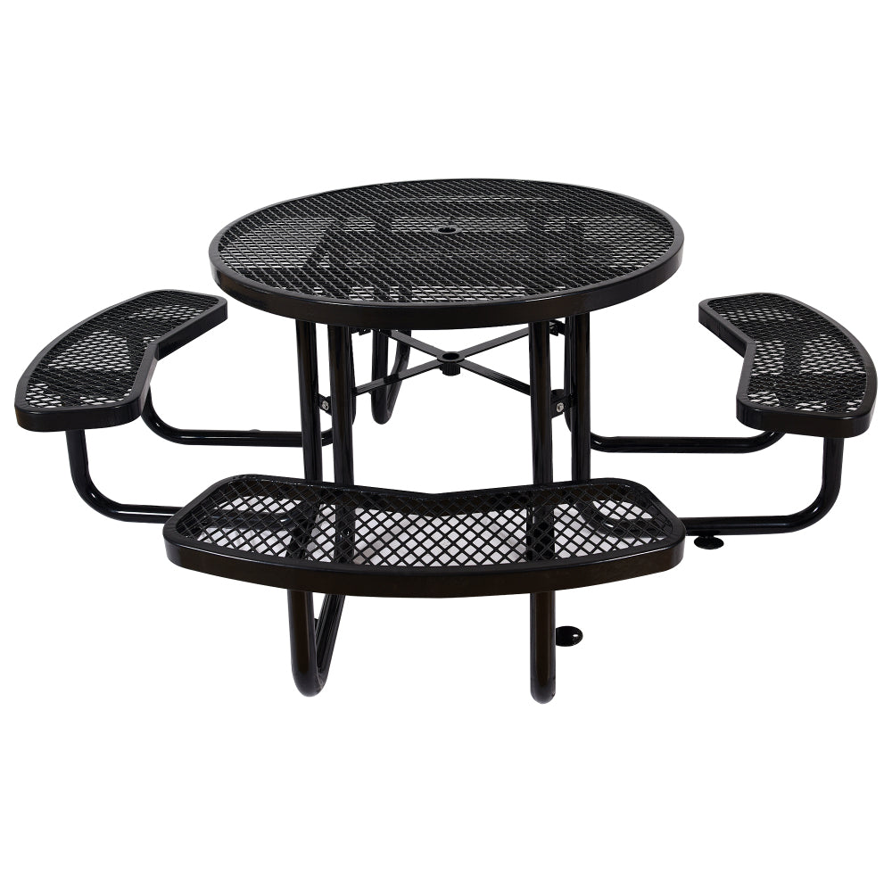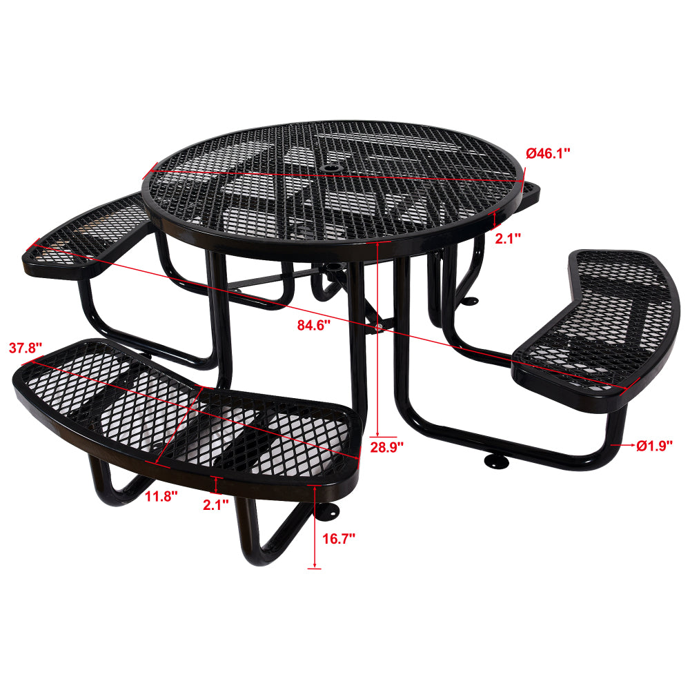 - Heavy-gauge perforated metal with a durable thermoplastic coating on benches and tabletop, Accept an umbrella with a pole of up to 1-1/2" diameter