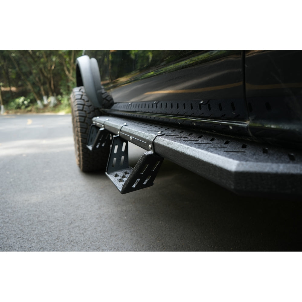 - 1.Premium Quality Ford Bronco Side Steps: Elevate your Ford Bronco 2021-2024 with these versatile and durable side steps. Crafted from heavy-duty steel and coated with a black powder finish, these retractable steps are resistant to rust and corrosion, ensuring long-lasting performance.