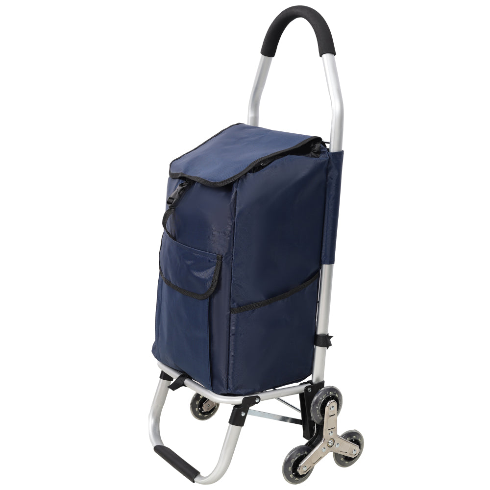 • Shopping Stair Trolley with Wheels,Trolley Dolly Black Foldable Shopping Cart,Removable Shopping Oxford Waterproof Bag,Stainless Steel Triangular Wheels, Blue
