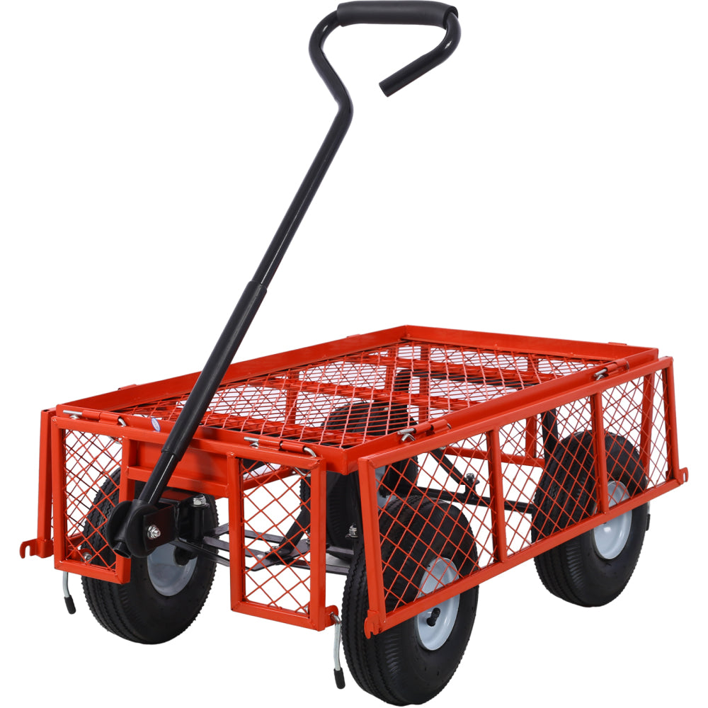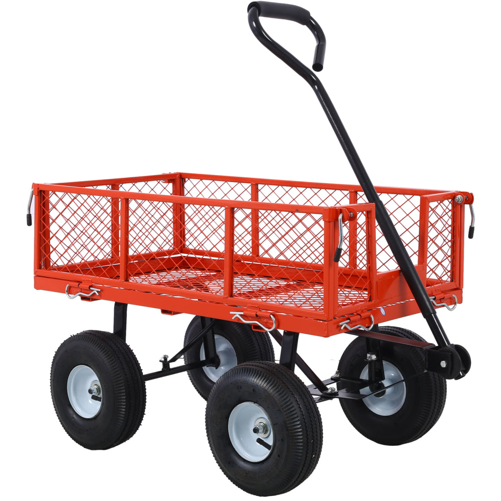 - VERSATILE HELPER: Whether you're cleaning up debris, hauling brush, or moving landscape materials, our gardening cart has got you covered. Its removable sides allow for quick and easy conversion into a flatbed, making loading and unloading a breeze. Maximize its functionality and tackle every task in your yard or farm effortlessly.