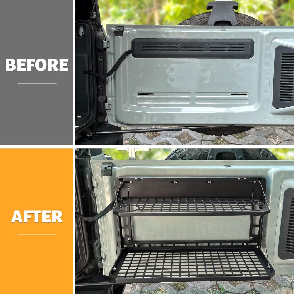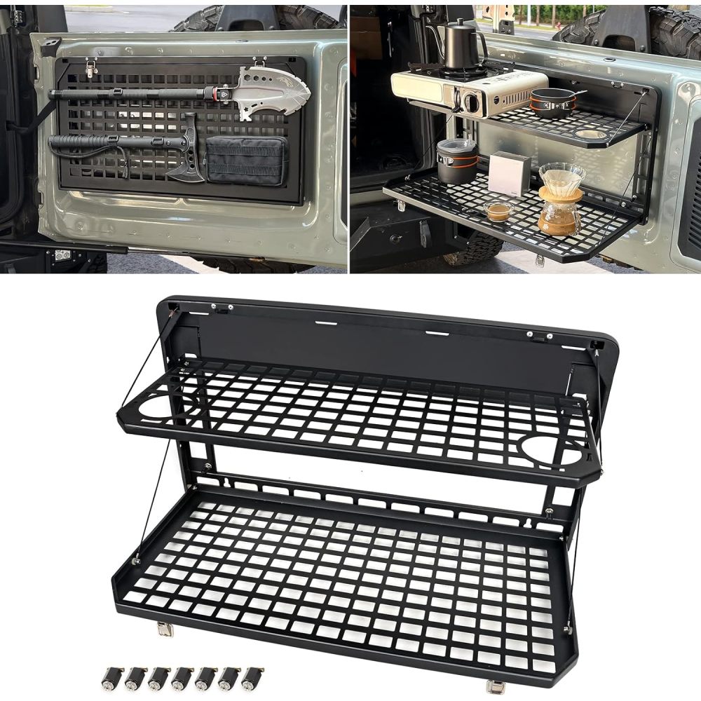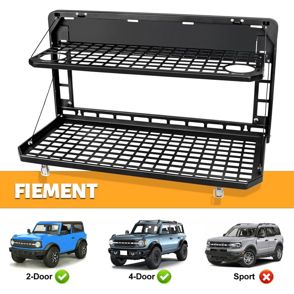- the double-layer design for Ford Bronco provide more space for storage, it is not only large enough to use as a picnic table for tailgates or lunch on the trail, but also makes for a great workbench while working on your vehicle