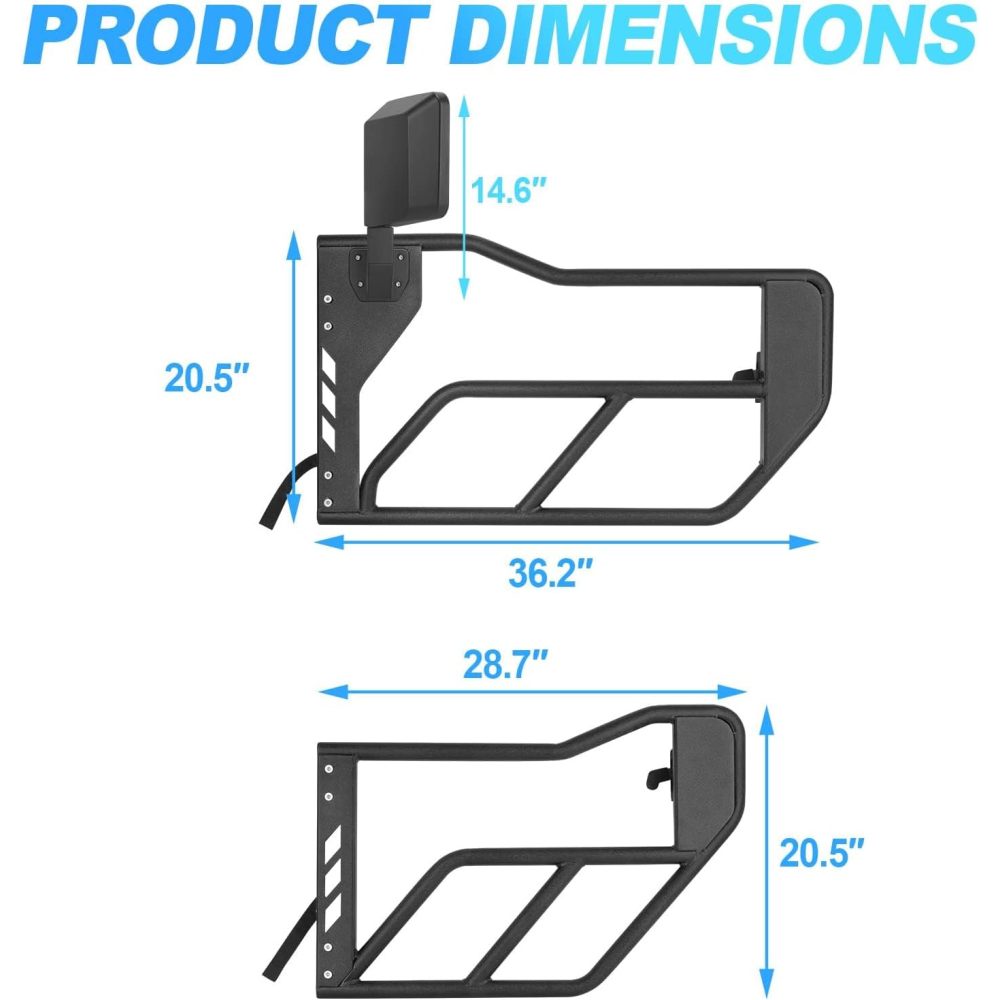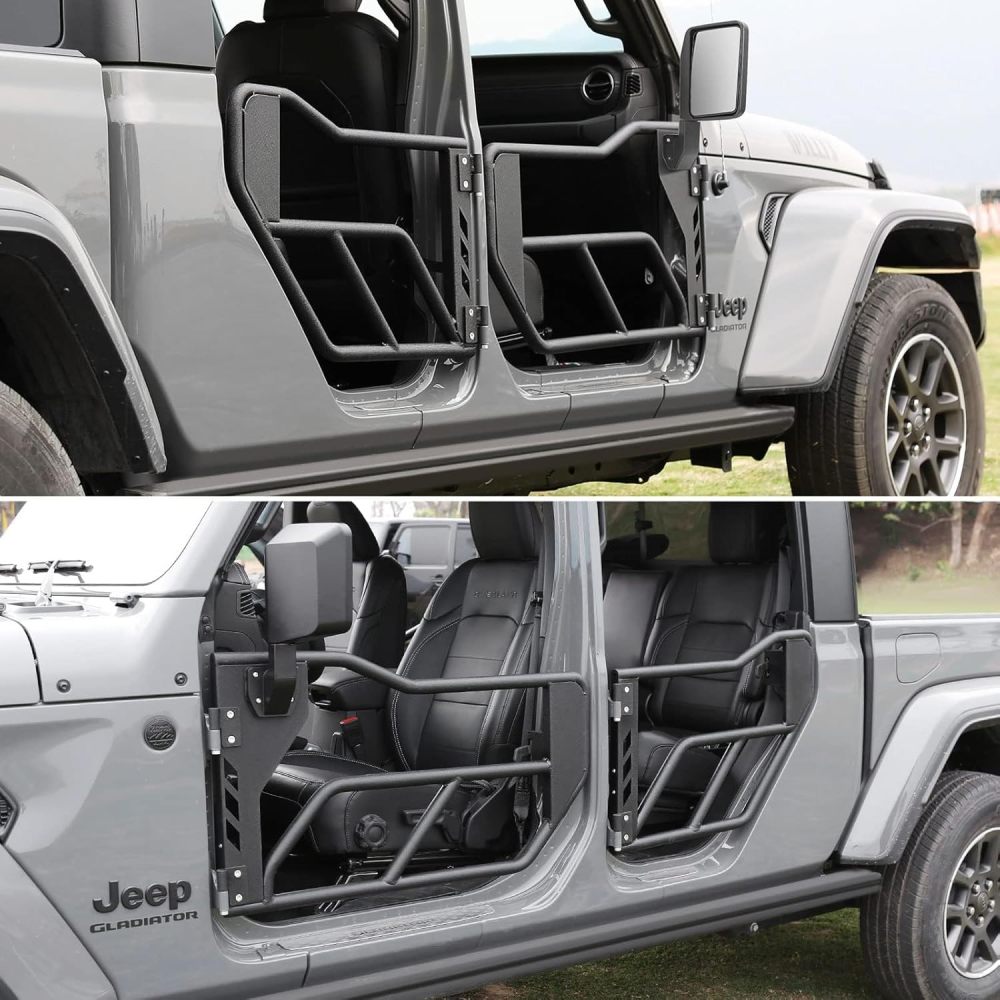 - Compatibility: The Steel Tube Half Doors with Side View Mirror for 2018-2024 Jeep Wrangler JL JLU & Gladiator JT 4-Doors(Includes 4XE). They will not fit a Jeep Wrangler JK model.
