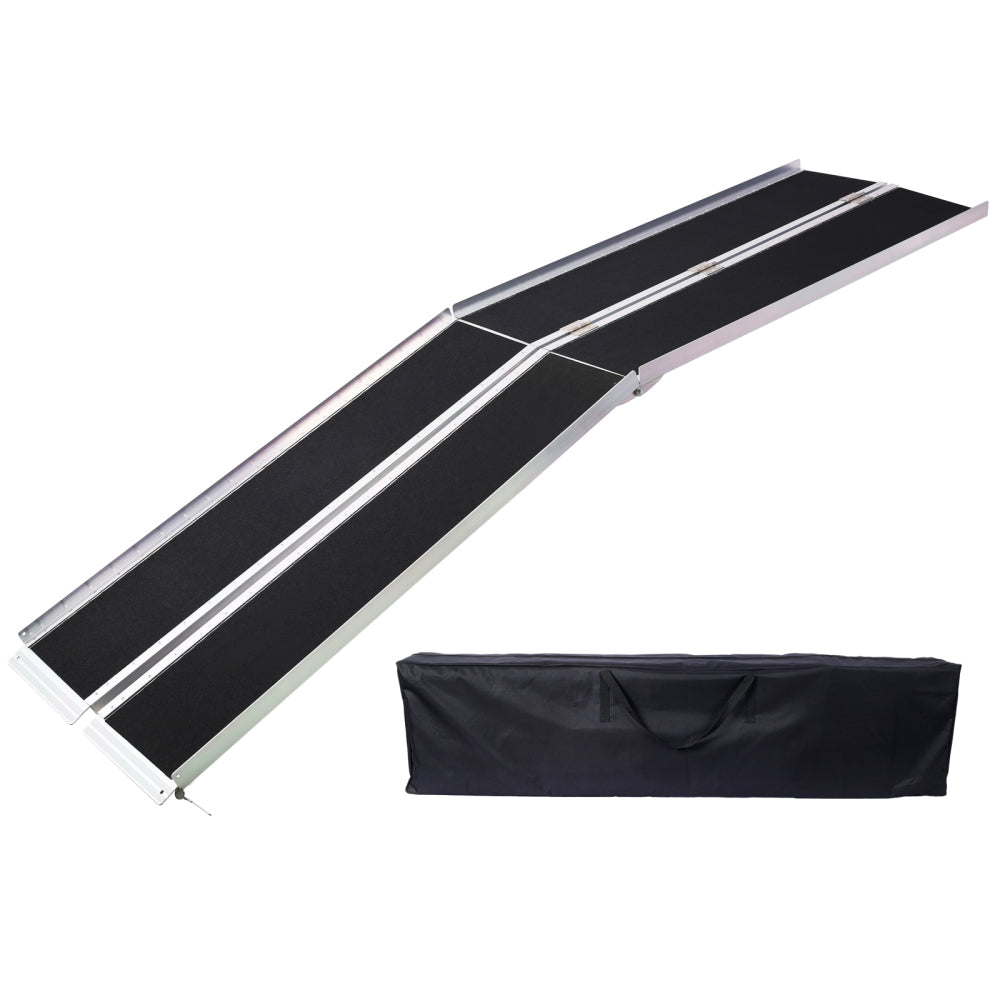 [Durable Construction] Constructed from high-quality aluminum alloy materials, this wheelchair ramp is both durable and sturdy, with a weight capacity of up to 700lbs (317kg). It is rust-resistant and designed to withstand extreme weather conditions and long-term outdoor use.