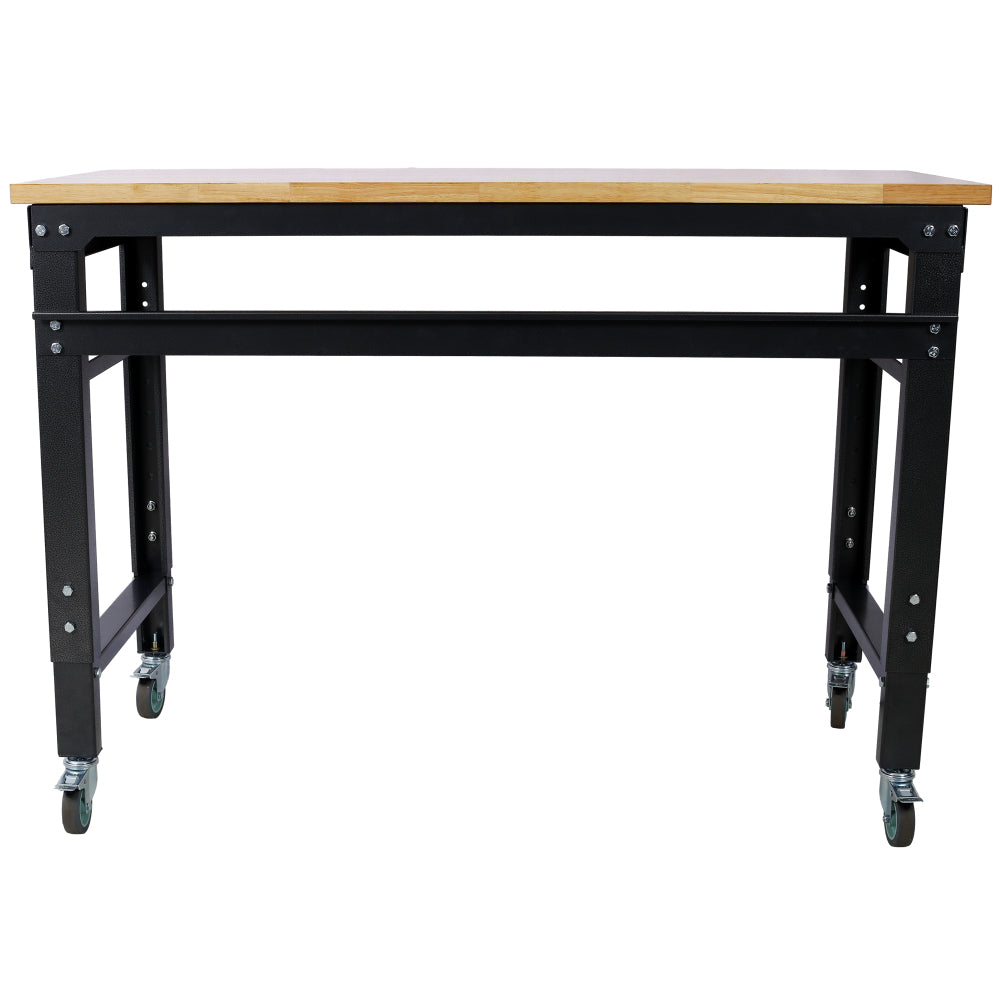 - Durable and Stable: Our garage workbench boasts an indestructible steel frame and a solid acacia wood surface. The locked caster ensure a stable work surface, making it suitable for various tasks such as gardening, soldering, and more.