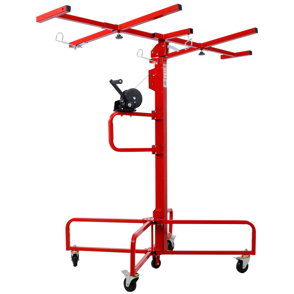 Drywall Lift Panel 16' Lift Drywall Panel Hoist Jack Lifter Jack Rolling Caster Wheel Sheetrock Drywall Lift Construction Tools,150-lb. Capacity, 4ft. x 16ft. Max. Sheet Size ,red