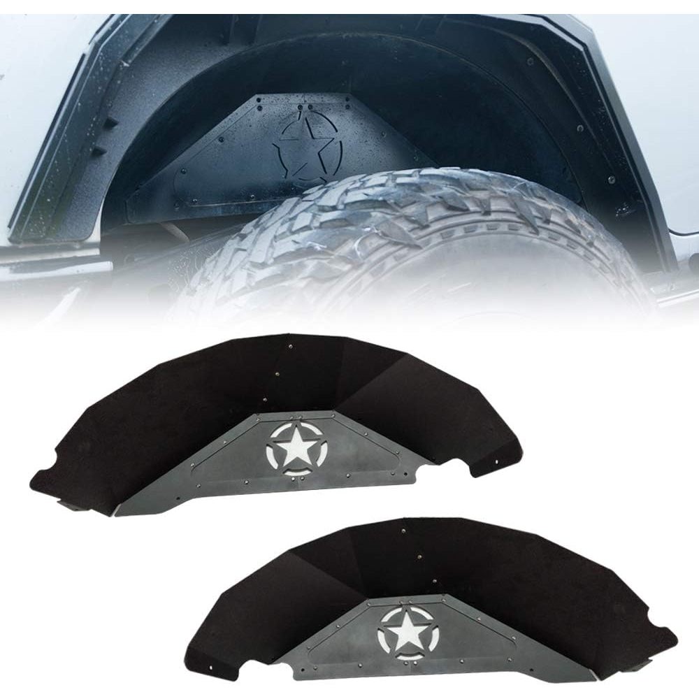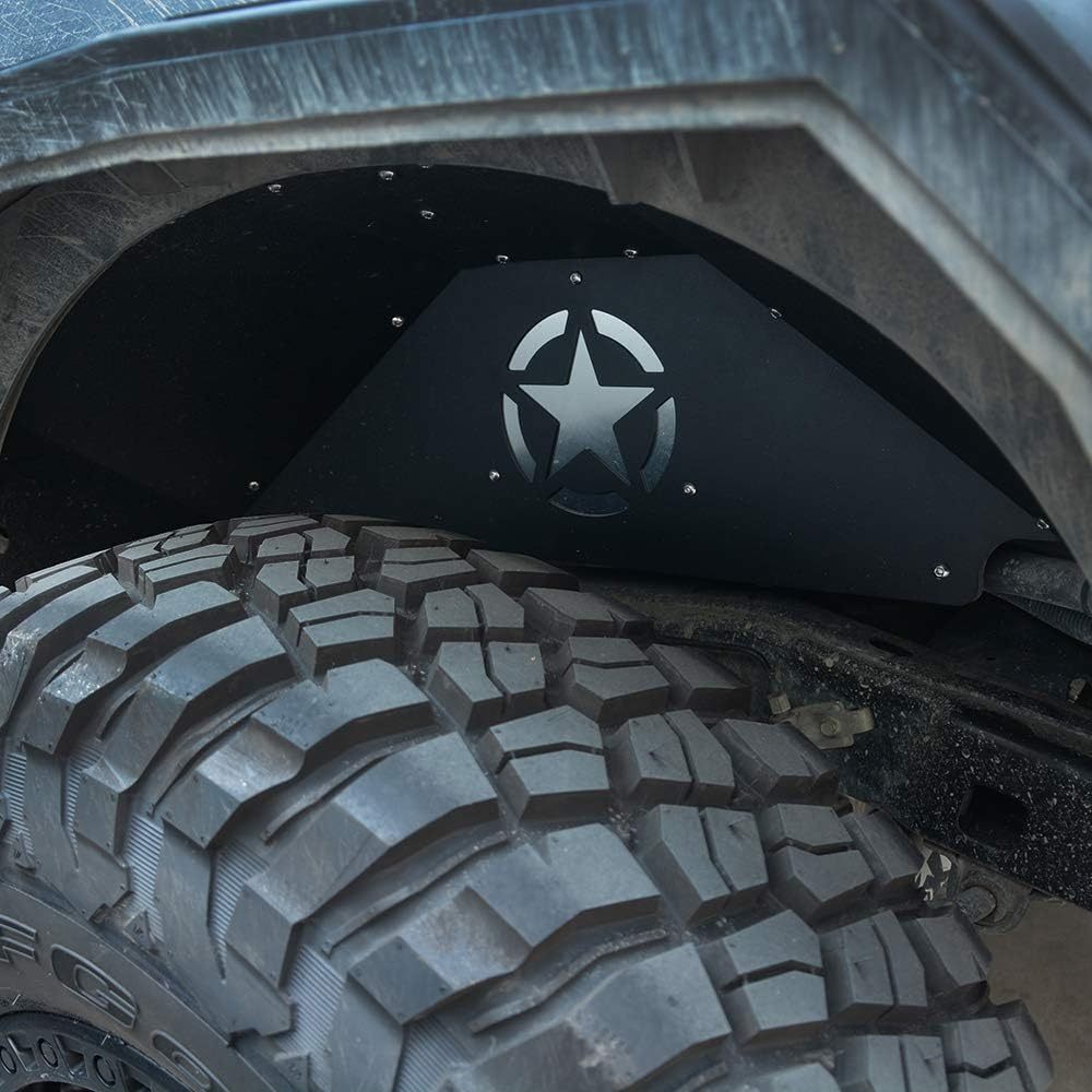 Compatible with Rear Inner Fender Liners w/Five Star Logo 2007-2017 Jeep Wrangler JK JKU 4WD Lightweight Aluminum Design Black