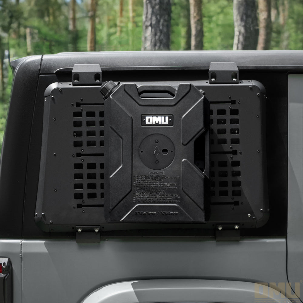 2.64 Gallon/10L Door Hinge Gasoline Container and Mount Set Compatible with 2007-2023 Jeep wrangler JK JL JT, Gasoline Pack Mount Backing Plate with Snapin Spout Backup Petrol Water Storage Can