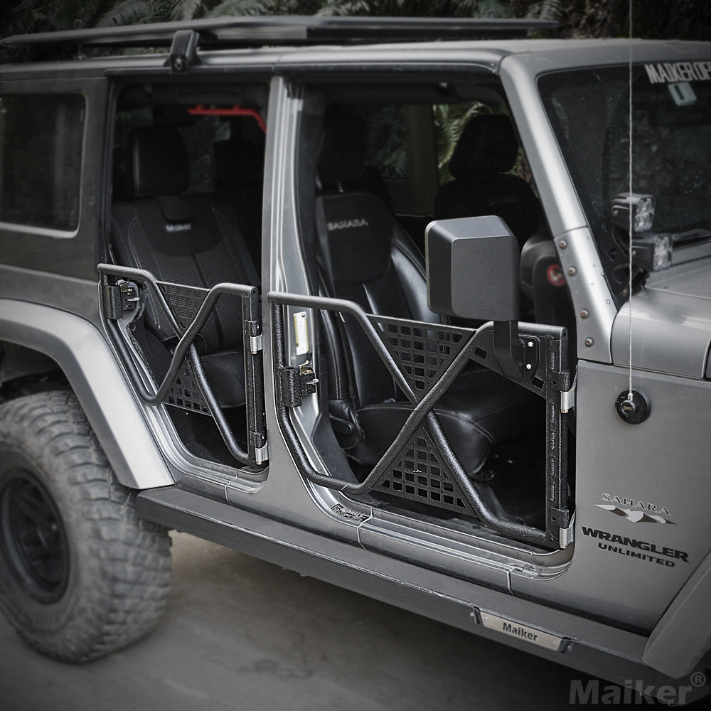 Tube Doors Tubular Half Doors with Rearview Mirror Compatible with 2007-2018 Jeep Wrangler JK JKU Unlimited 4-Doors Safari Tubular Off Road Summer Trail Adventu Competition